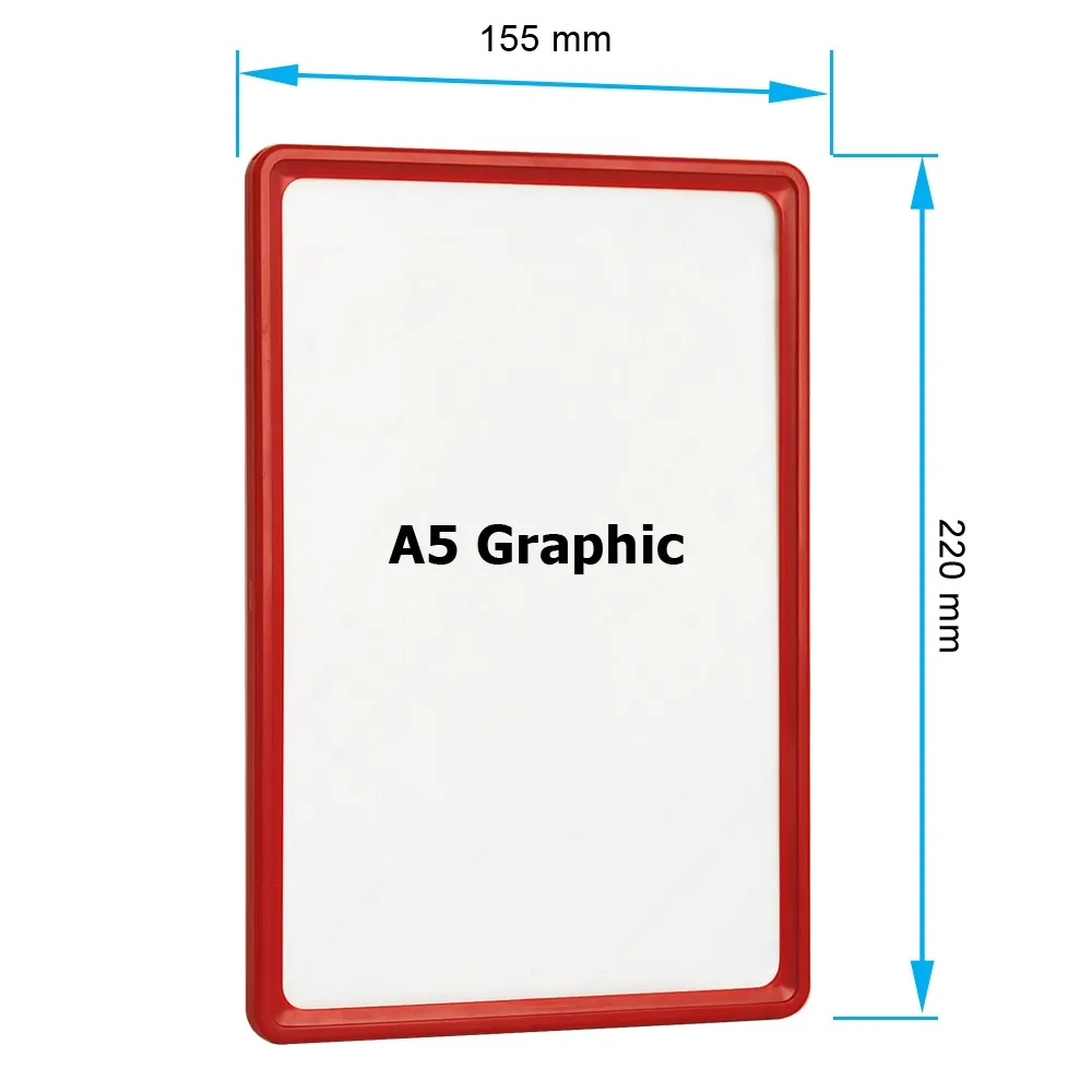 Signage in red A5 is bright and eyecatching, drawing in the attention of passerby's. This frame is especially effective in high traffic areas. The inexpensive and durable sign can be displayed as is, or on hooks or stands. Included in your purchase are 2 clear lenses used to protect your graphics from dust, ensuring they look professional at all times. To change your graphics you can simply slip in and out your posters as needed. Order before 2 PM EST to receive same day despatch to anywhere in Australia from our Melbourne warehouse.