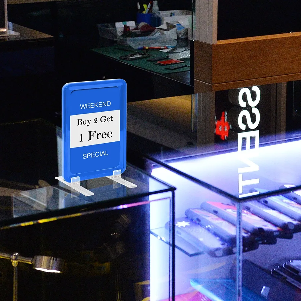 A6 frame for retail display is designed to hold 148 x 105mm graphic in either portrait or landscape orientation. This display is great for displaying custom signs that inform of upcoming events, pricing information, ongoing sales, and much more at a variety of business types! The sign holder is dual-sided in order to reach more customers at once from a single point. This maximises exposure to your adverts without taking up more room! Retail stores, cafes, information centres, and museums are just some of the locations that commonly use this display!