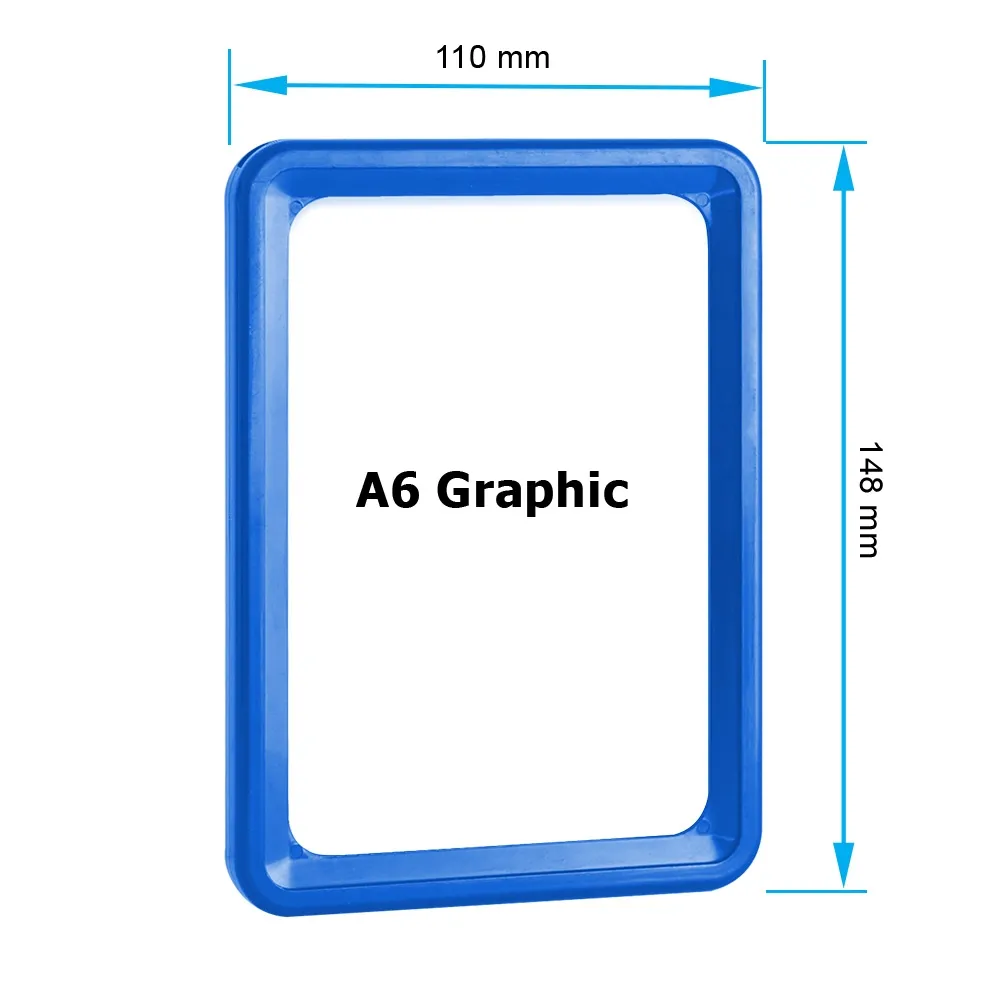 - A6 frame for retail holds 148 x 105mm graphics in portrait or landscape format