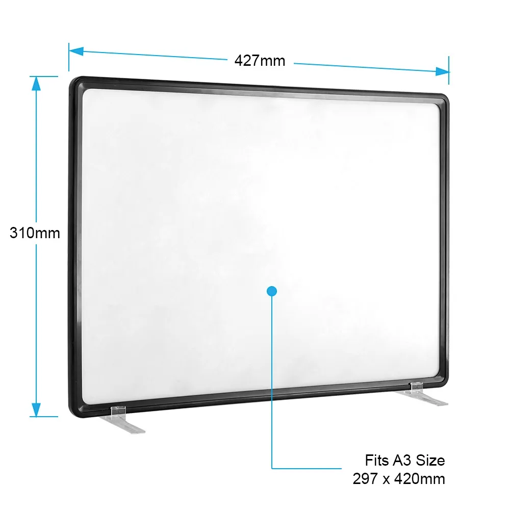 - Designed to hold an A3 (420 x 297mm) graphic in portrait or landscape orientation