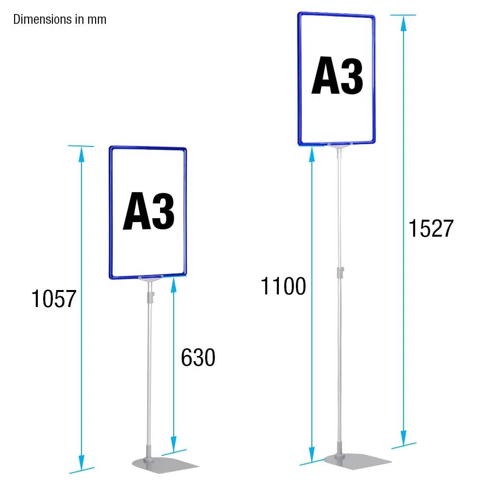Adjustable height signage A3