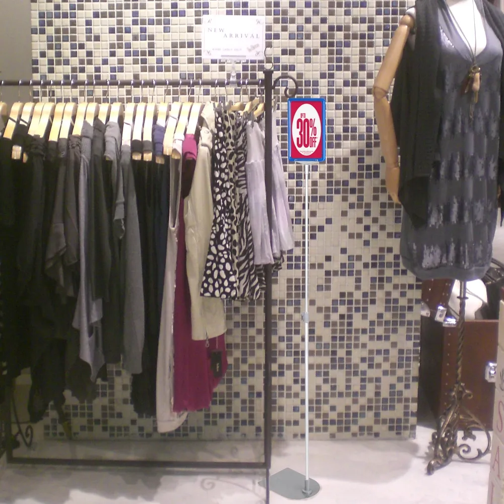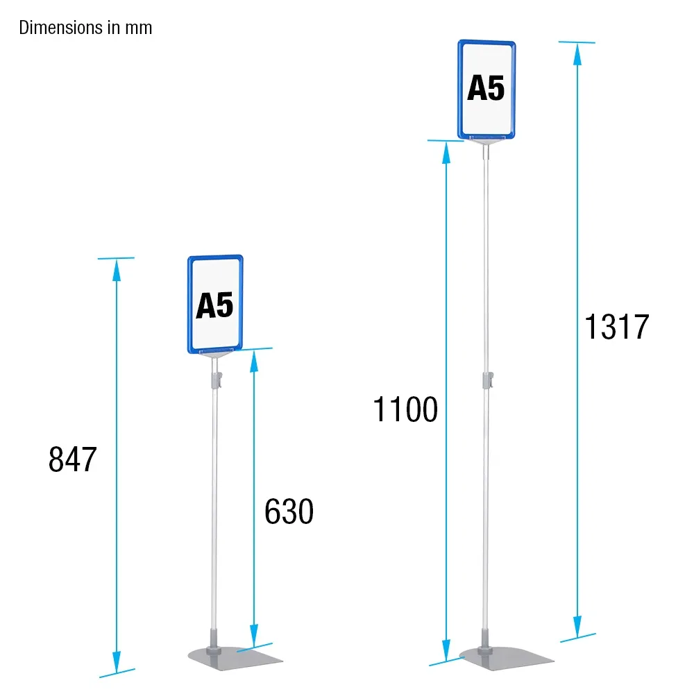 Free-standing grocery sign is double-sided, allowing you to maximise exposure to customers. The frame has an easy to use slide-in design, so you can change your graphics in and out in seconds! This display is perfect for retail stores, supermarkets, chemists, tradeshows and more! The telescopic pole allows you to change the height of your signage between 847 to 1317mm and secure at your desired height with the latch. A versatile display that is quick and easy to use in fast-paced environments!