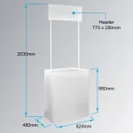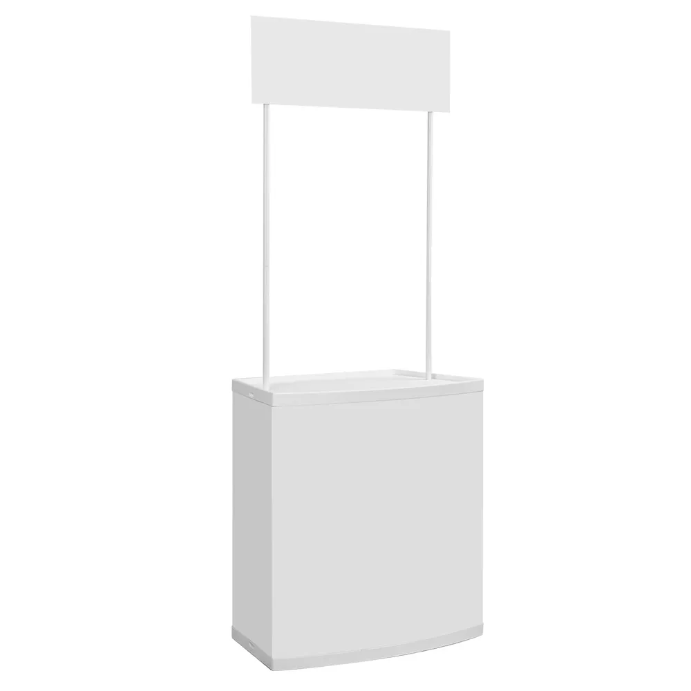 The popup display counter, pop up counter is made from rigid plastic to provide a lightweight display that is also inexpensive. This portable stand for exhibits is also durable, able to be placed in any area without worry for years to come! This style of counter is popular with many businesses due to it's low cost & durable design.