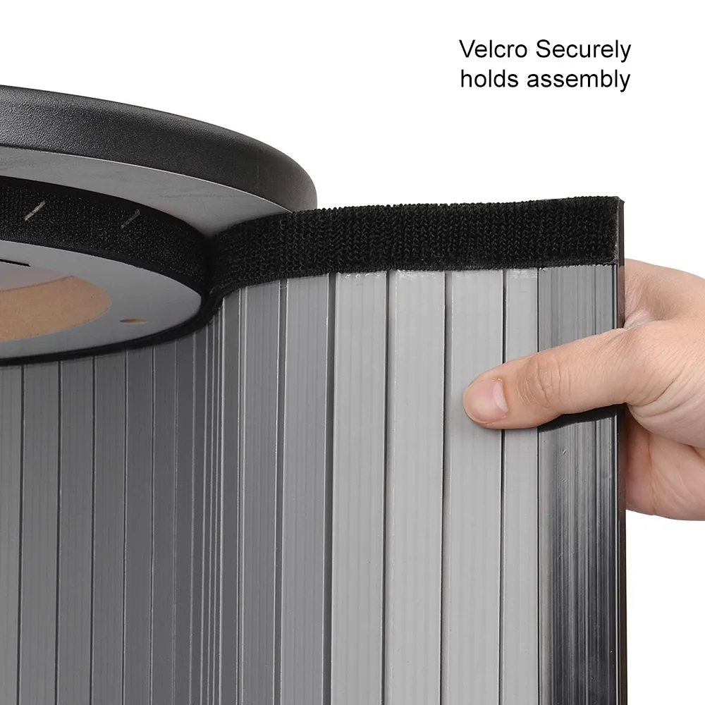 Promotional counter construction - The portable counter top and base are constructed from durable MDF with a black matte finish. Your graphics are applied to a fluted extruded plastic surface that forms the sturdy walls of the counter. This surface attaches to the base and the counter top with Velcro - so no tools are required to set up the promotion counter.