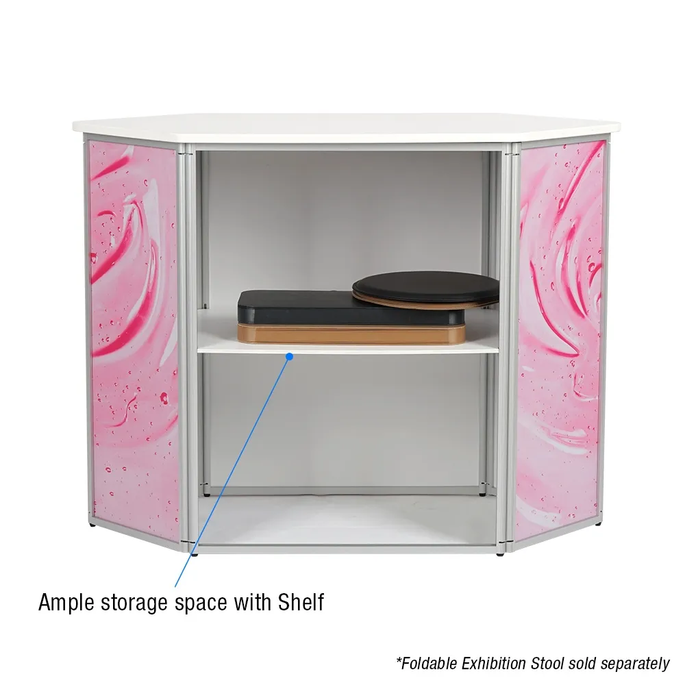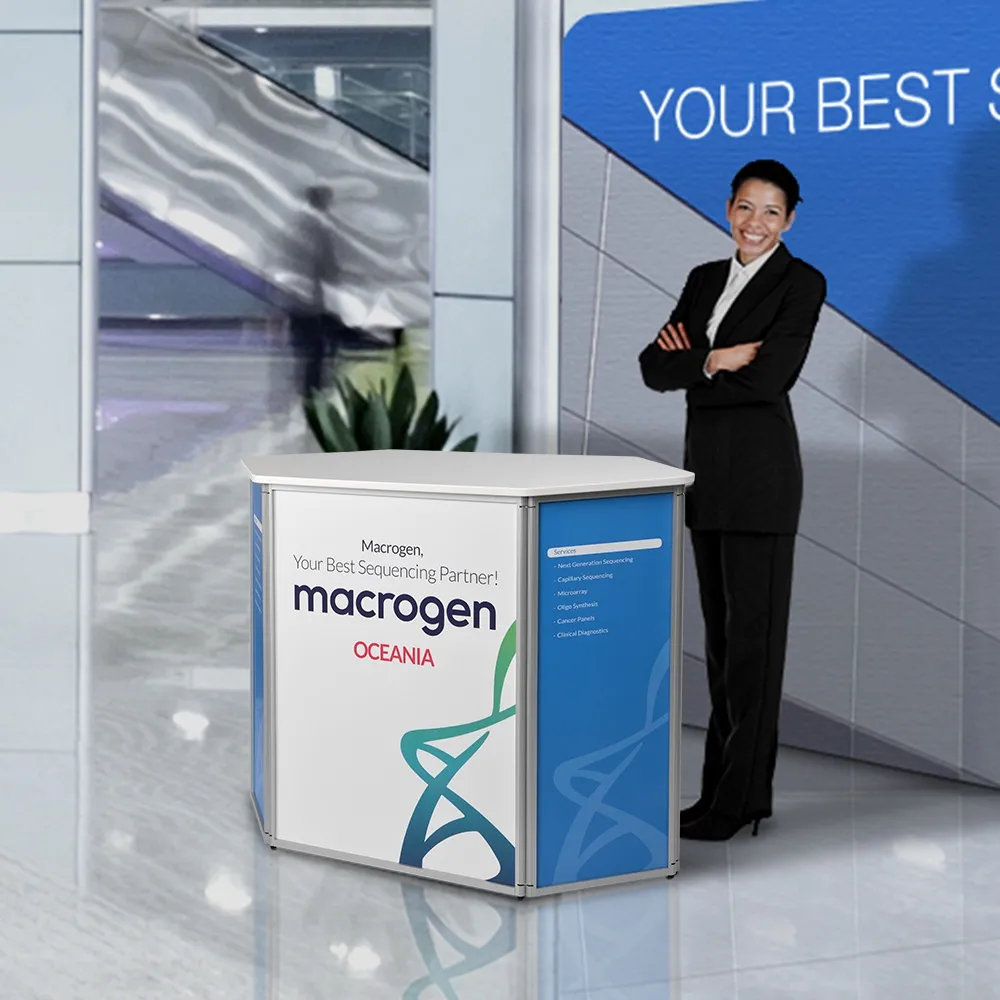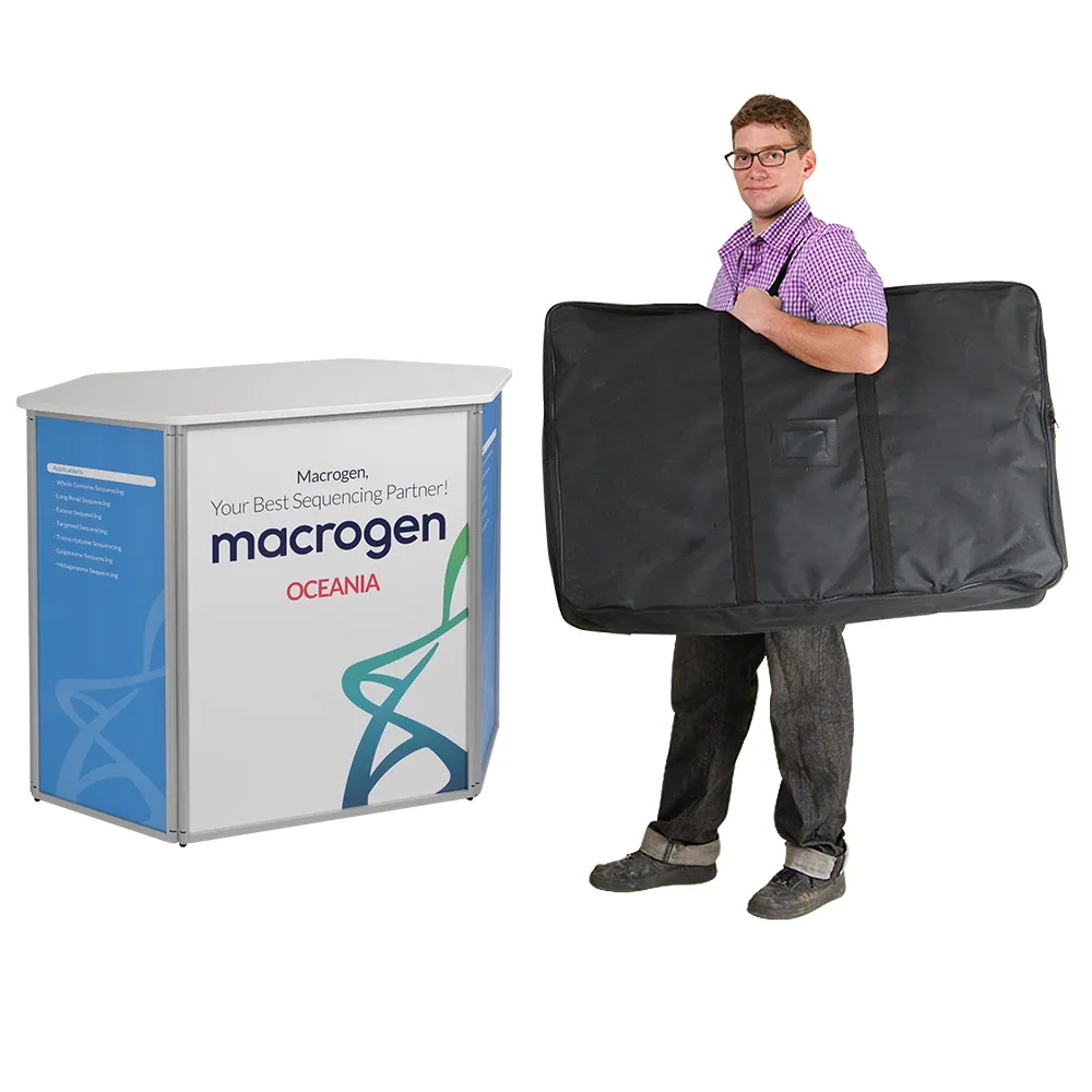 Using a portable promotion counter at any event gives your company a more welcoming and organised presence that attracts your audience to come forward, giving them a better view of the products and services displayed on your promotional counter and allowing your staff to interact with them.