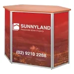This promotional counter table has your custom designed graphics digitally printed on the 3mm thick PVC panels. The front panel is 640mm x 860mm, with (4) smaller sides panels at 290mm x 860mm. Each panel is able to have its own graphic to maximise space and let you have your display look exactly as your wish! The trade show counters help promote your company in an eye-catching manner, drawing passersby in towards your area in any location.