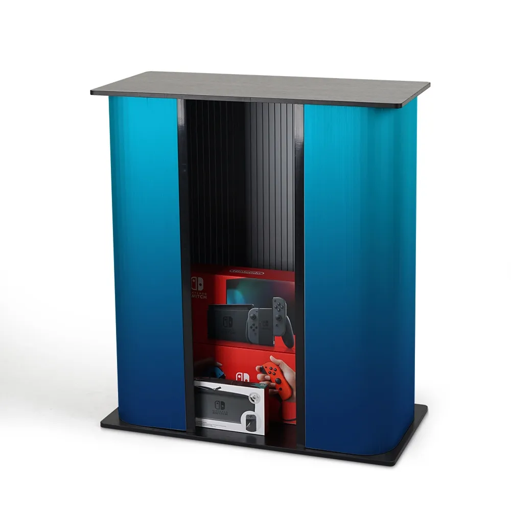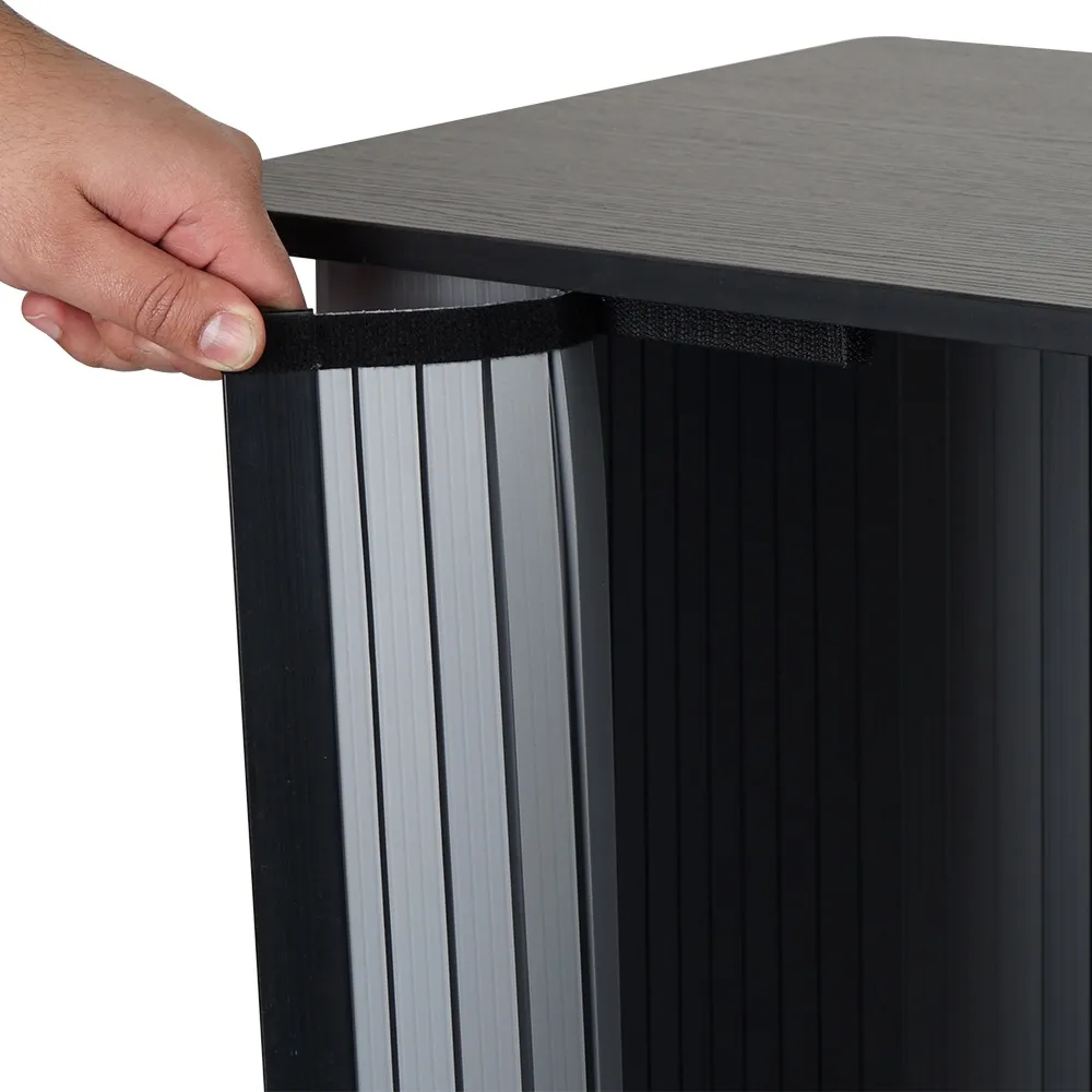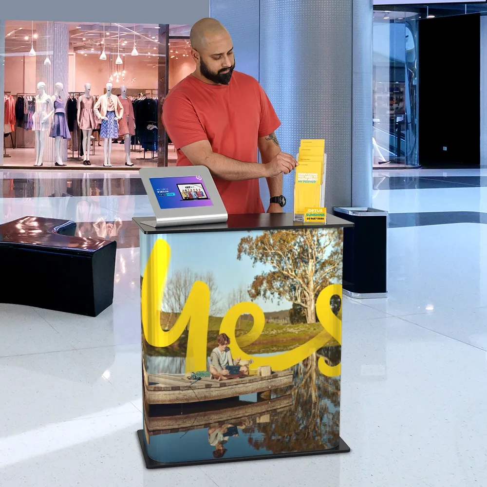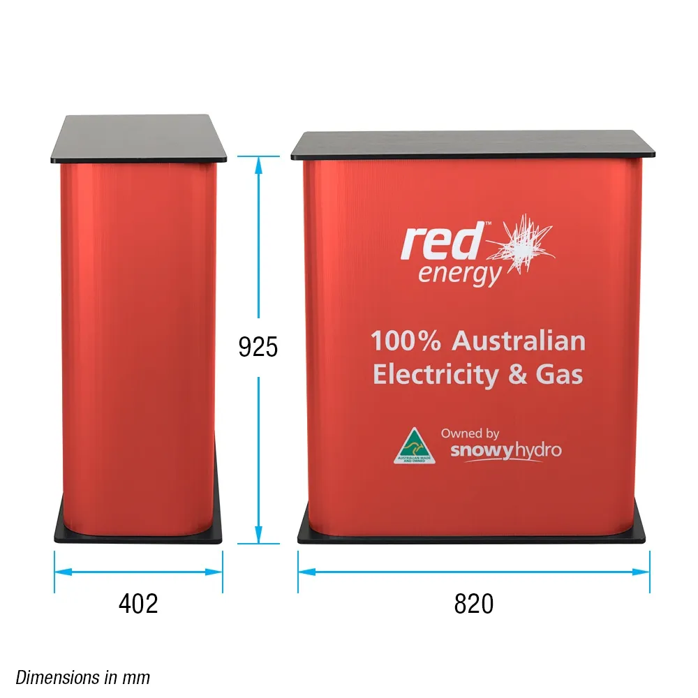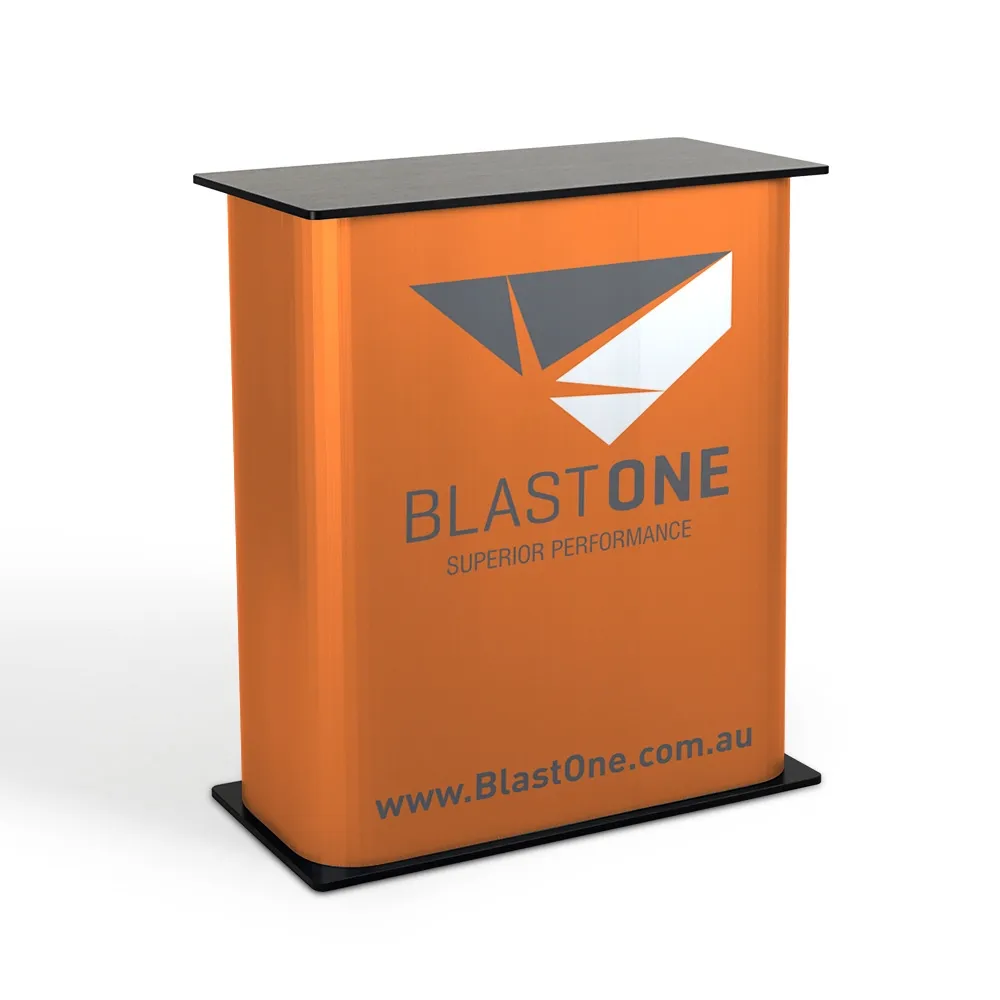 The countertop and base are made from black laminated MDF for a neutral look that works with any style of graphic design on the wrap. The 8.5kg display is easy to carry into position and then set-up whether used at exhibitions, expos, transportation hubs, shopping centres, outdoor events, or retail stores. Slimline Warehouse has quick shipping available to anywhere in Australia with this and most other in stock products, buy online today!