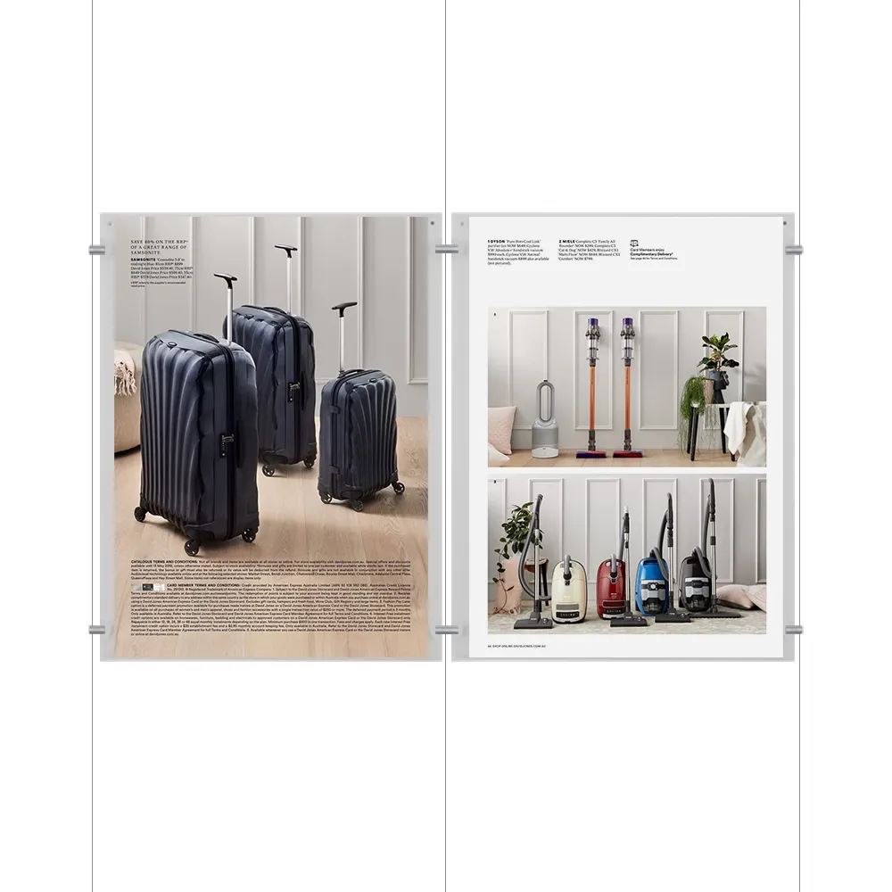 Use this acrylic poster holder with cable hanging systems to expand your array of poster frames or add another size! This frame holds A2 (420 x 594mm) standard sized posters that are in portrait orientation, with the dual-sided holder displaying on both sides to maximise outreach to visitors. The slide-in design makes it easy to switch out posters in seconds, with no tools needed. There are (2) button magnet sets embedded in the clear perspex to keep the frame from flopping open and help ensure graphics stay in position. Order online by 3pm AEST for same day shipping to anywhere in Australia with this and most other products when in stock, only from Slimline Warehouse!