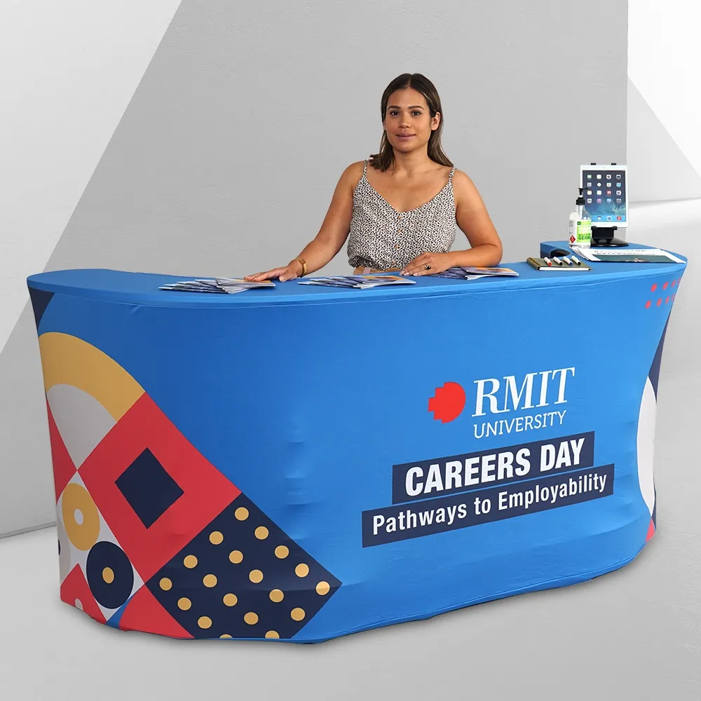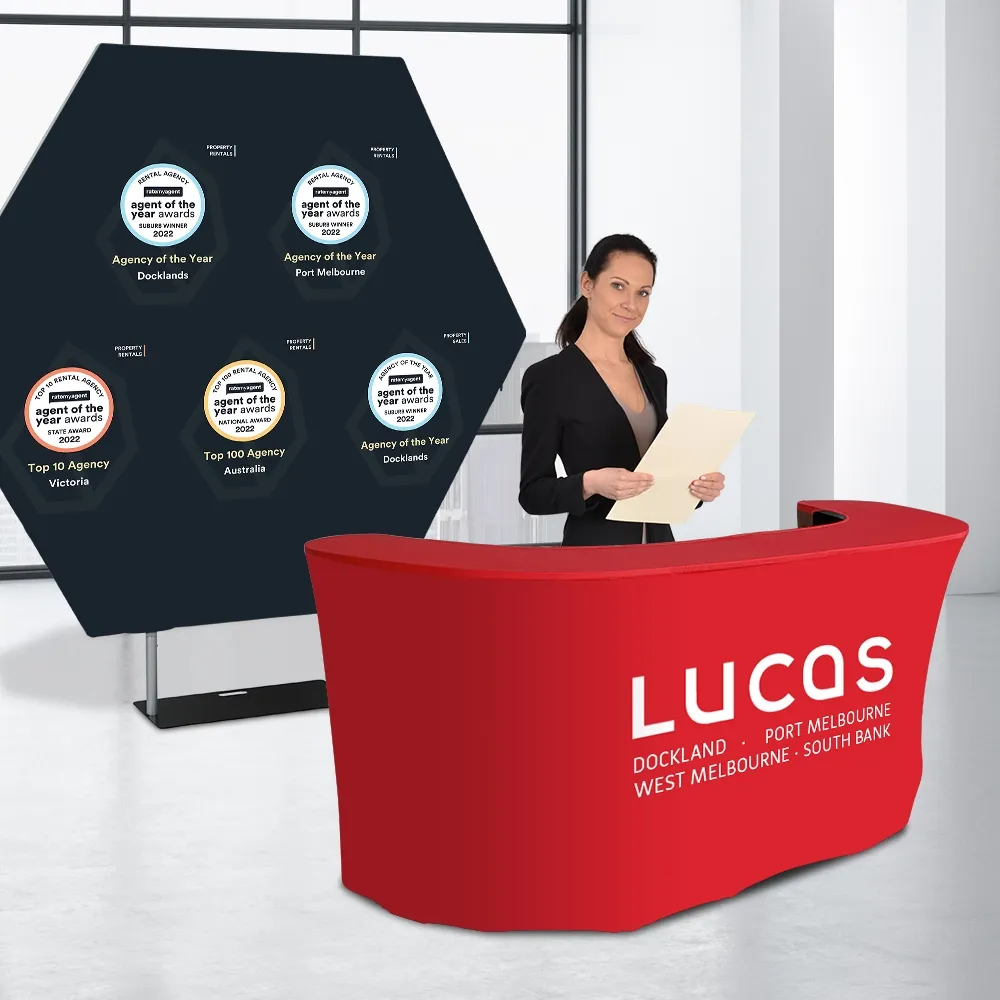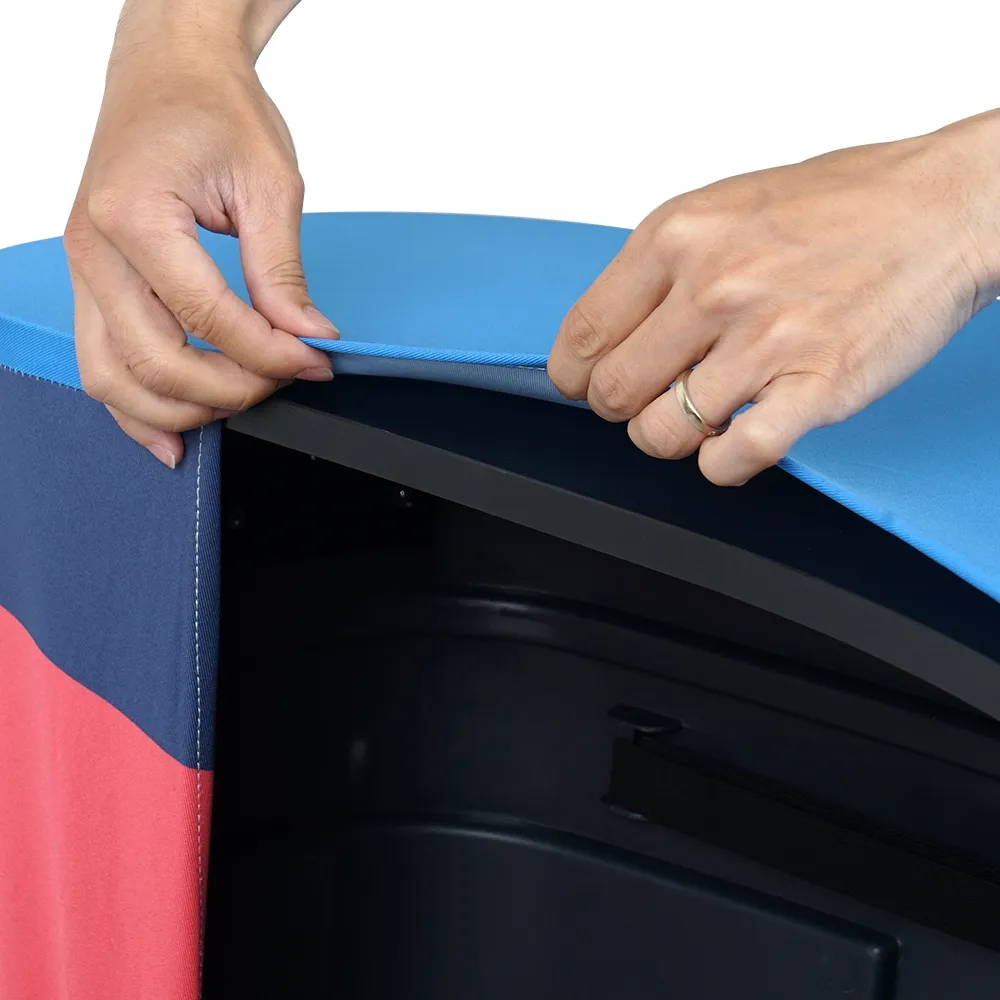 This tradeshow shipping case helps you bring items to and from events and transforms into a exhibition counter once at a location to display items and meet with customers! The portable counters include a custom printed fabric wrap that goes around the entire front of the large display, helping to draw attention and get passersby interested. Your designs are digitally printed in full colour onto a hard-wearing wraps that will last for years to come and not fade over time for a great return on investment. There are additional wraps available for purchase separately as well to allow you to update information of market to specific clientele without having to purchase an entire new kit. If you need design help, our in-house team is also available. Three tiers of assistance are offered to help you meet your exact needs.s