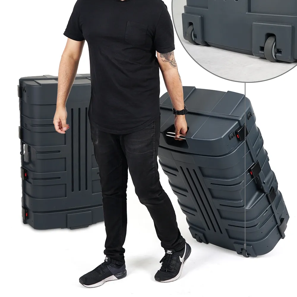 • Travel cases are made from hardshell plastic with wheels & built-in handles for easier transport