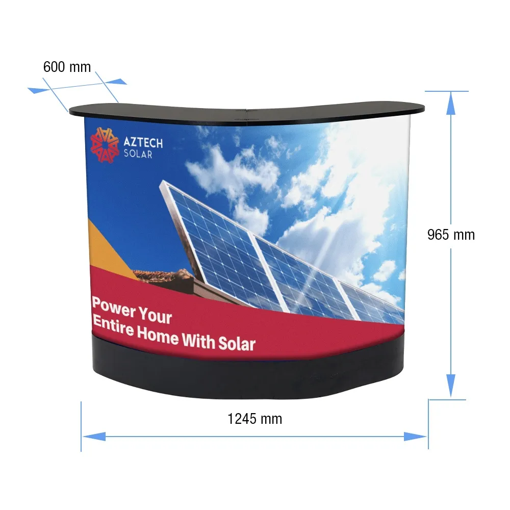 Setting up this portable display is quick and easy with no tools needed. The case has wheels and a built-in handle to make moving it between events and into position really simple. The casing is made from black ABS plastic to provide a hard-wearing display that will protect your items well during transport. A black PVC skirt goes around the base to hide the wheels and provide a more professional look. The countertop is made from black laminated particle board that matches the skirting to nicely sandwich the graphic and focus attention. Slimline Warehouse has fast shipping available to anywhere in Australia from our location in Melbourne, buy online today for quick dispatch nationwide for use at your upcoming events!