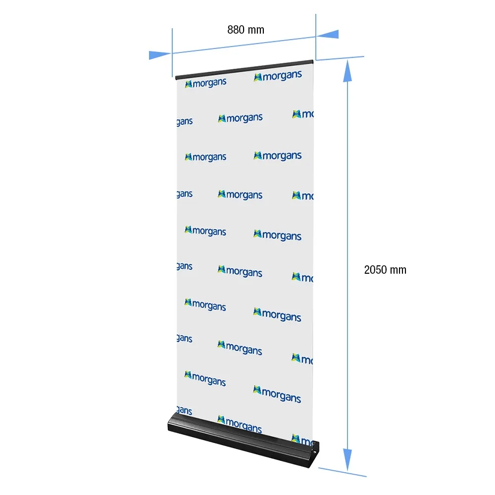 These banner stands are single sided roll up banners that can be set up and displayed within your exhibition or trade show in minutes. The large 2 metre tall banner is 0.85 metres wide making it useful as a media backdrop for presentations and seminars.  These are retractable banners that feature a durable aluminium base that has a storage compartment for the fold up support pole. Your banner neatly packs away and also comes with a carry bag.