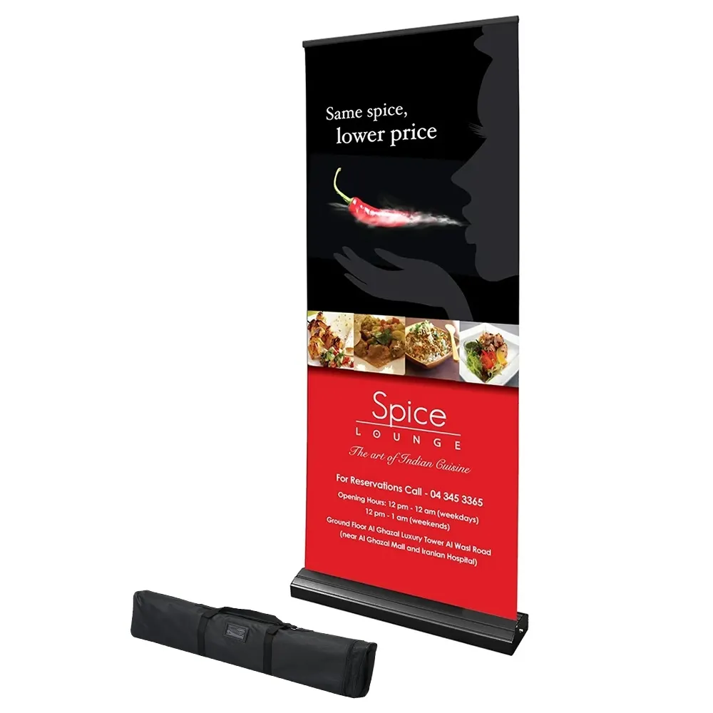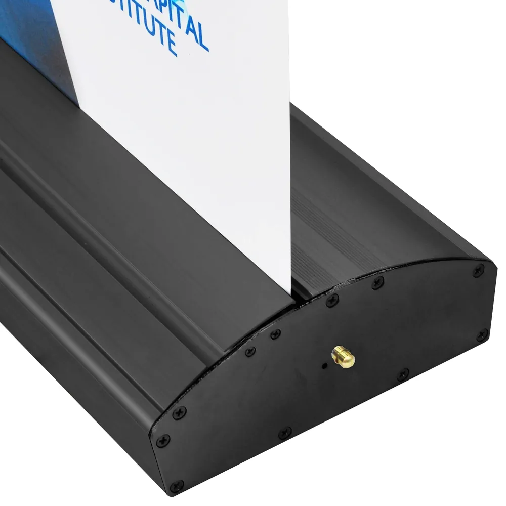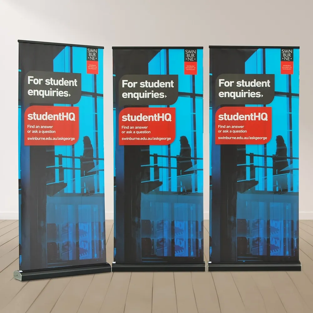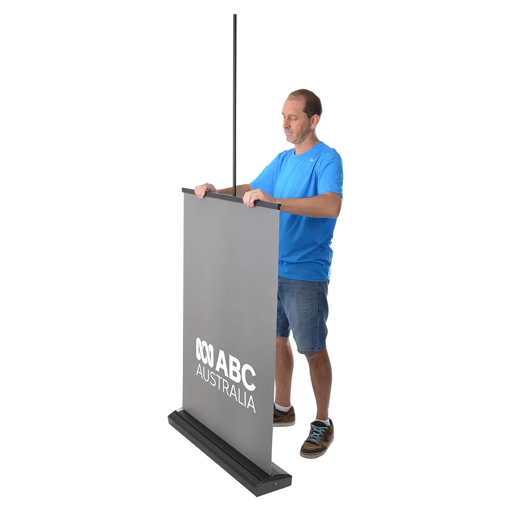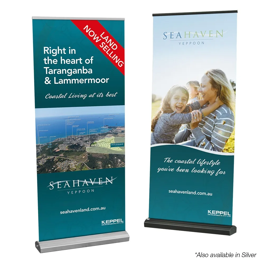 Printed on 230gsm satin polyester canvas. This black banner stand with its sleek & modern design will transform your graphic into a professional presentation. Confidently build an audience with your advertisements through using this easy to use pull up banner. This banner has been manufactured with quality extruded aluminium and the digitally printed banner is installed for your convenience.