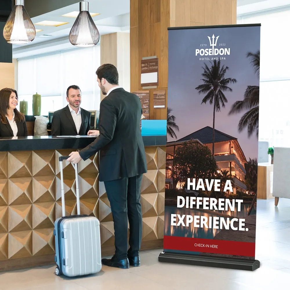 • Single sided banner display that includes a digitally printed banner with your very own graphics
