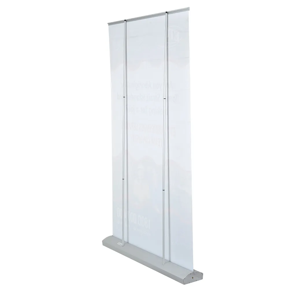 These display banners or exhibition banners stand at a huge 2 x 1.2 metres giving you the best opportunity to advertise to a large audience. The banner is digitally printed by us and we install your artwork into the unit which means you can display your banner as soon as it arrives. This banner is constructed with high quality aluminium which has a clear anodised finish. The modern design will compliment any style of advertisements & graphics.