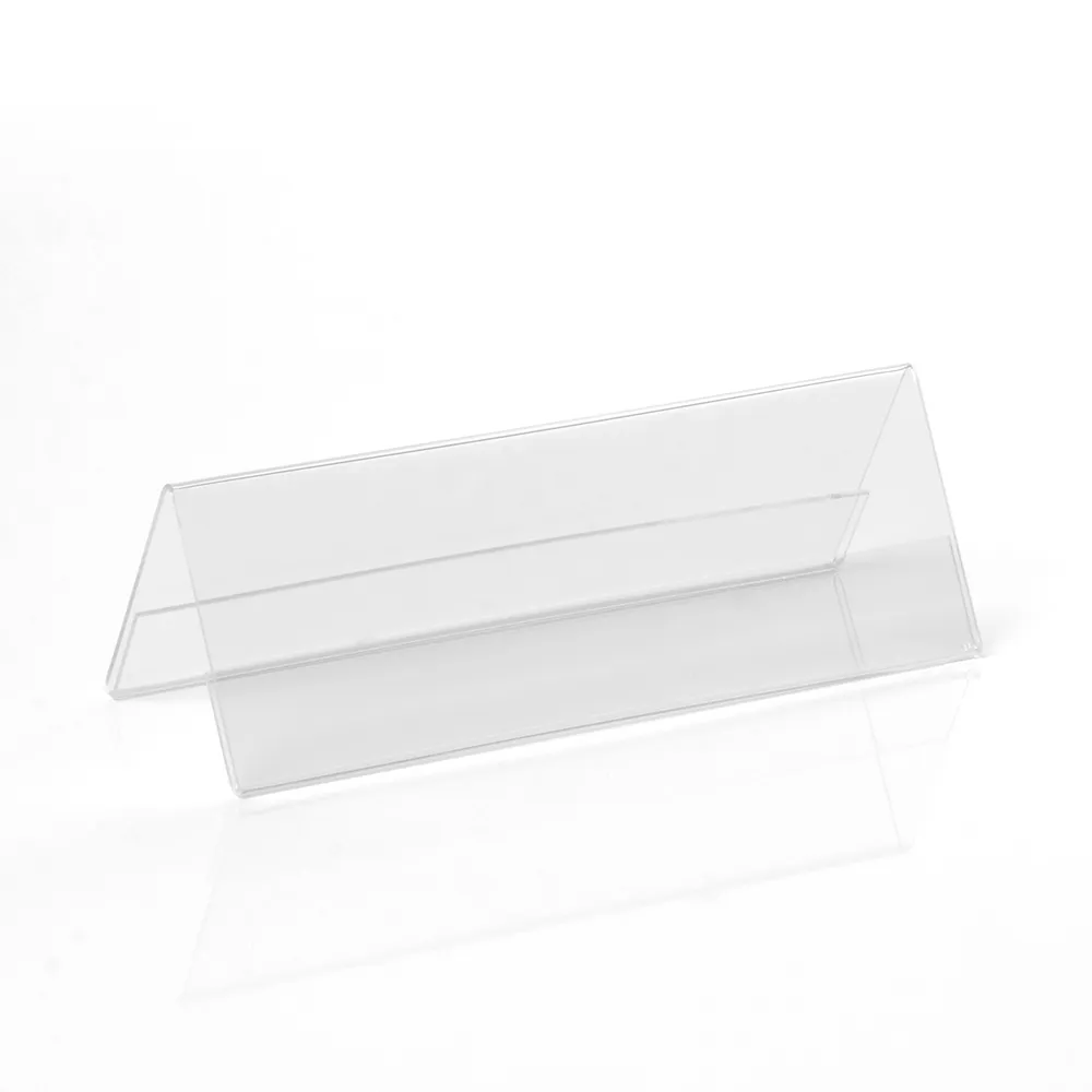A perspex display, like plastic stands and acrylic holders, has been designed to hold a 180 x 65mm graphic in landscape orientation. This stand utilises a stylish frameless design, angling your graphic to be more easily read by passersby wherever the stand is placed for an effective promotional tool!