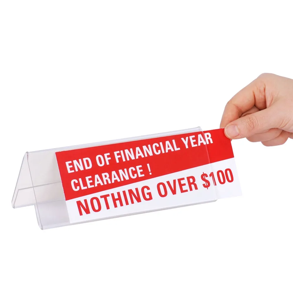 These clear plastic sign stands are dual-sided in order to maximise exposure without taking up additional space on your counter or tabletop! Each side holds the same size graphic, and is perfect for placement in a number of locations including retail stores, cafes, bakeries, hotels, casinos, travel agencies, doctor offices, and car dealerships!