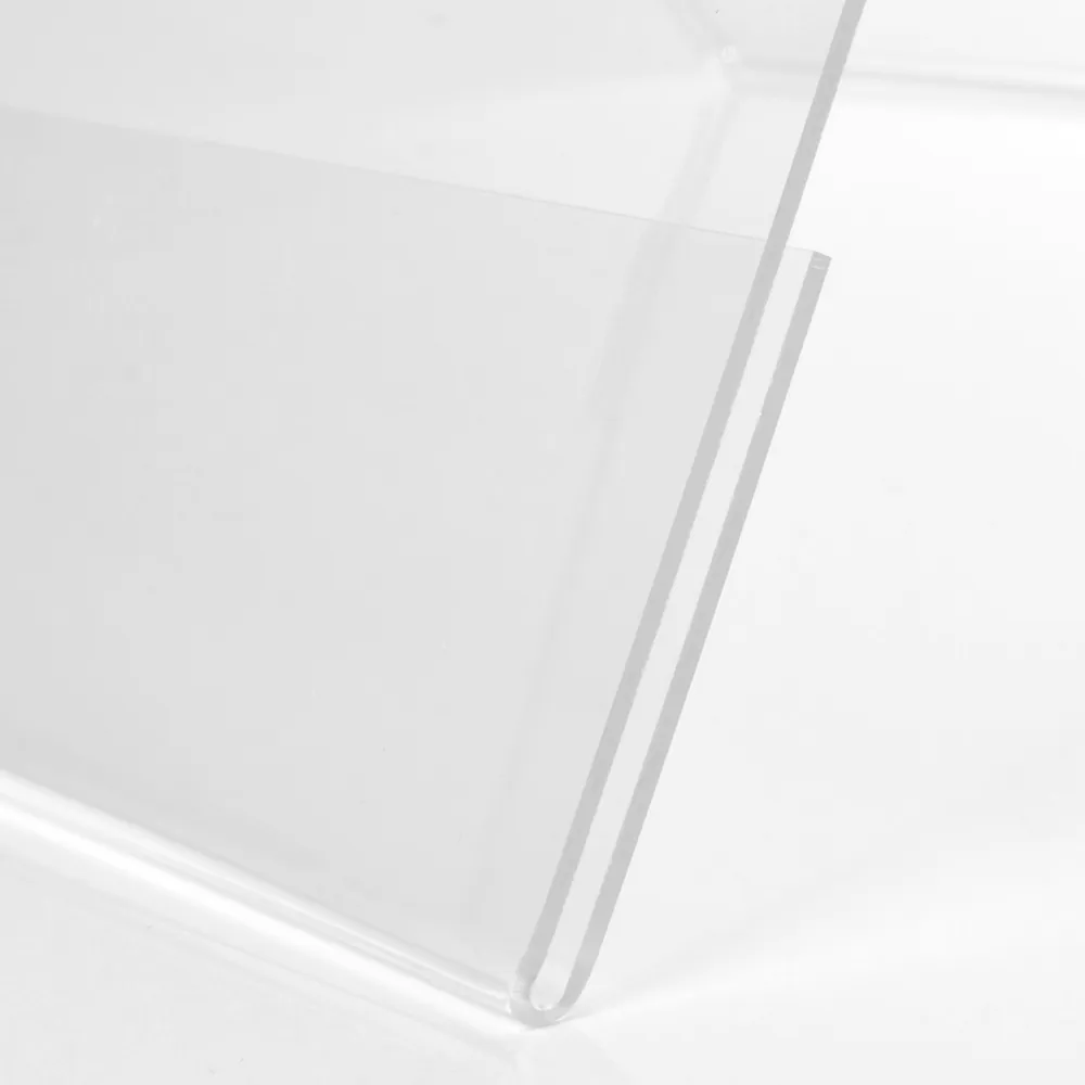 The 1.5mm thick acrylic that is used with these holders is clear, allowing signs to easily be read during display. This durable unit also helps to prevent grime and dust from gathering on signage in order to maintain a professional look at all times.