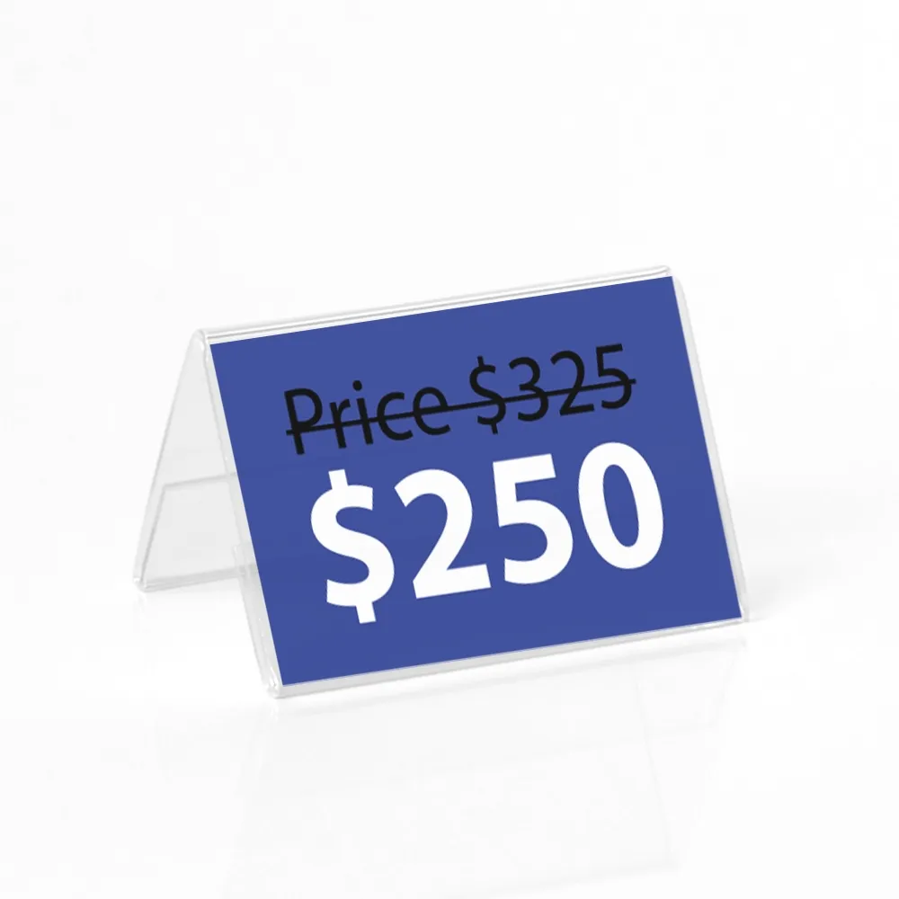 This cheap acrylic frame makes switching out graphics an easy task, with no tools required and less than one minute needed! The slide-in design allows custom graphics to be slid out quickly, with the angled holder making it easier to read displayed items as well so that passersby will more likely read the information!