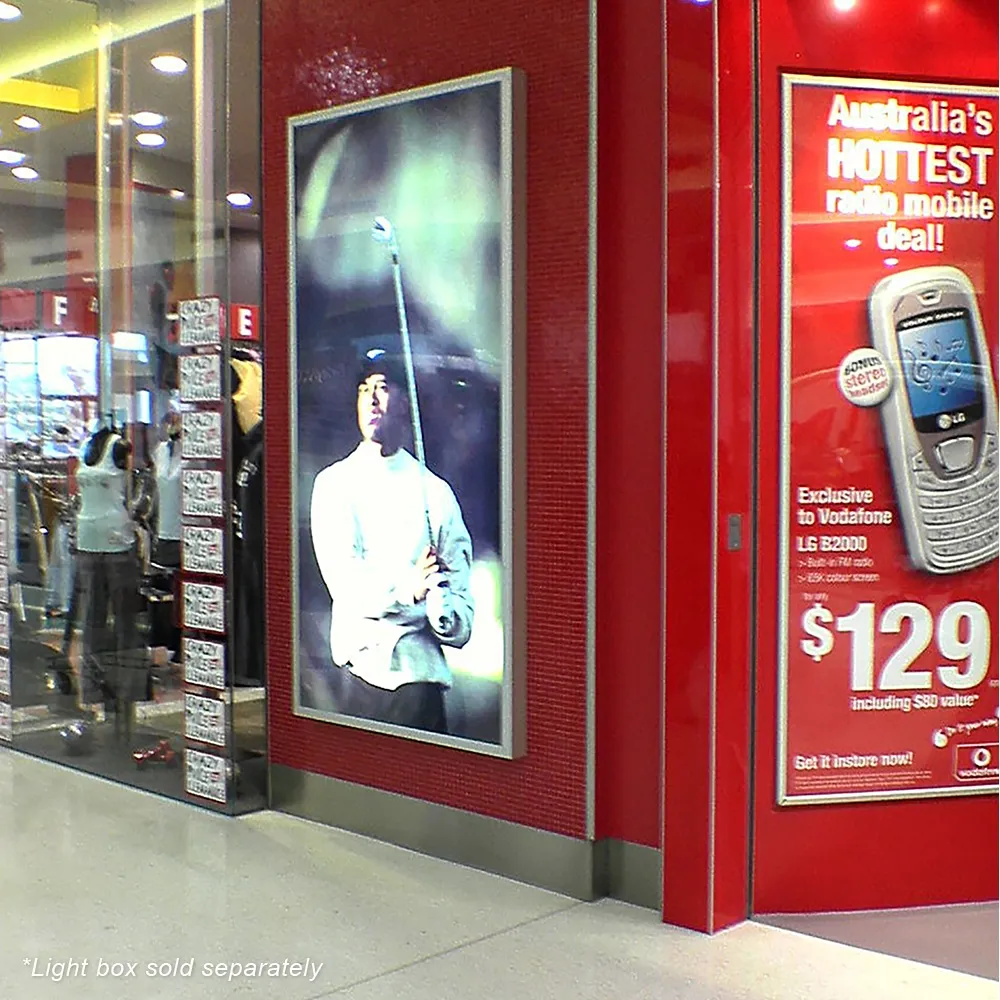 Lightbox poster printing provides a large transparent film that is perfect for adverting and promoting in retail stores, casinos, shopping centres, airports, information centres, cinemas, and more. The poster fits within a lightbox and is designed to be illuminated to easily draw the attention of potential customers. A digital printer is used to put your designs on the transparency with rich colours and vivid imagery that really make it stand out, perfect for advertising in public spaces. An in-house design team is available for assistance, with three tiers of help to choose from to meet your exact needs. Slimline Warehouse provides top quality printed graphics for use in a number of poster frames and totems, buy online today for fast shipping to anywhere in Australia!