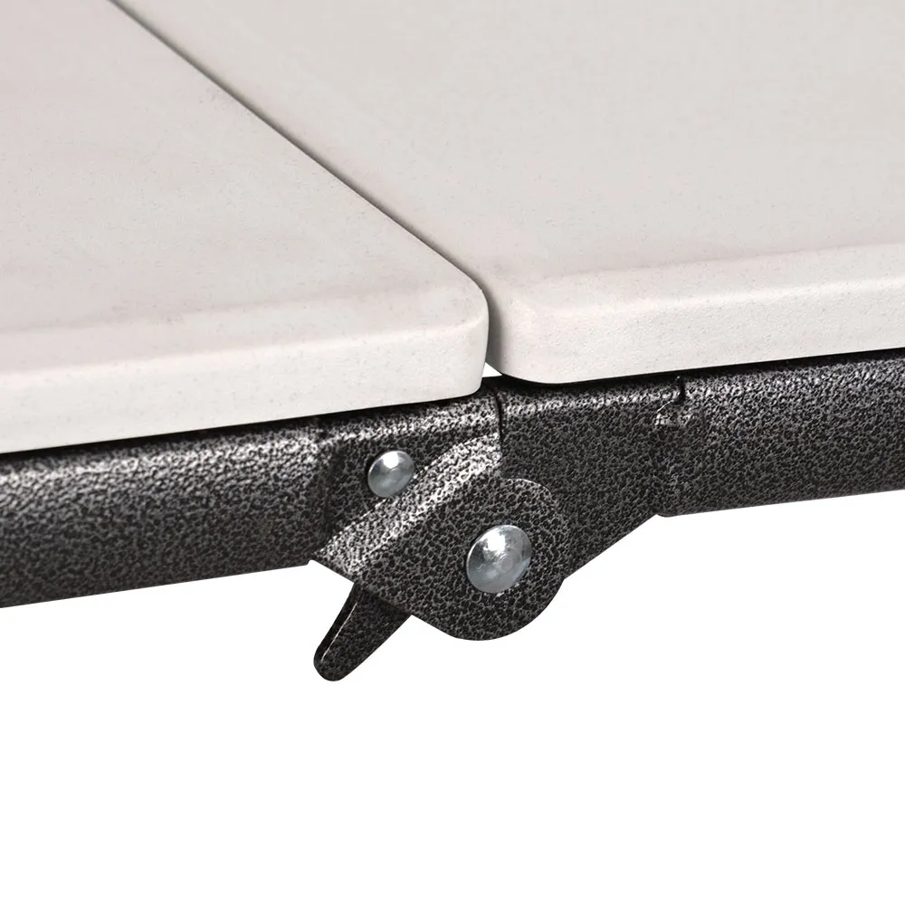- Folding table has easy-to-clean HDPE top with granite colour to fit in with any location easily