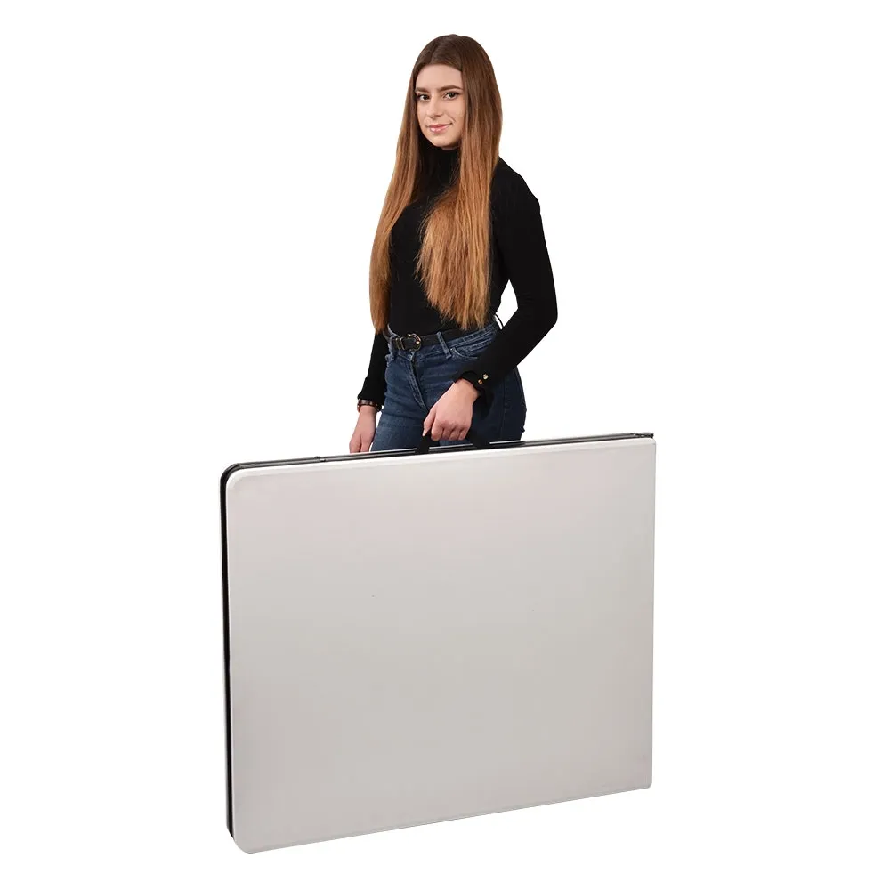 Portable tables are useful in many different locations to present merchandise and wares, or even as an area for employees to speak with potential clients. Some customers even use these in a dining room or outdoor garden during events to hold various items. These displays are perfect for use with our huge range of table throws, helping to leave an impression on potential clients at any event!