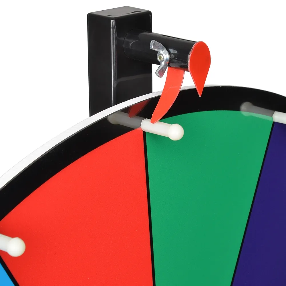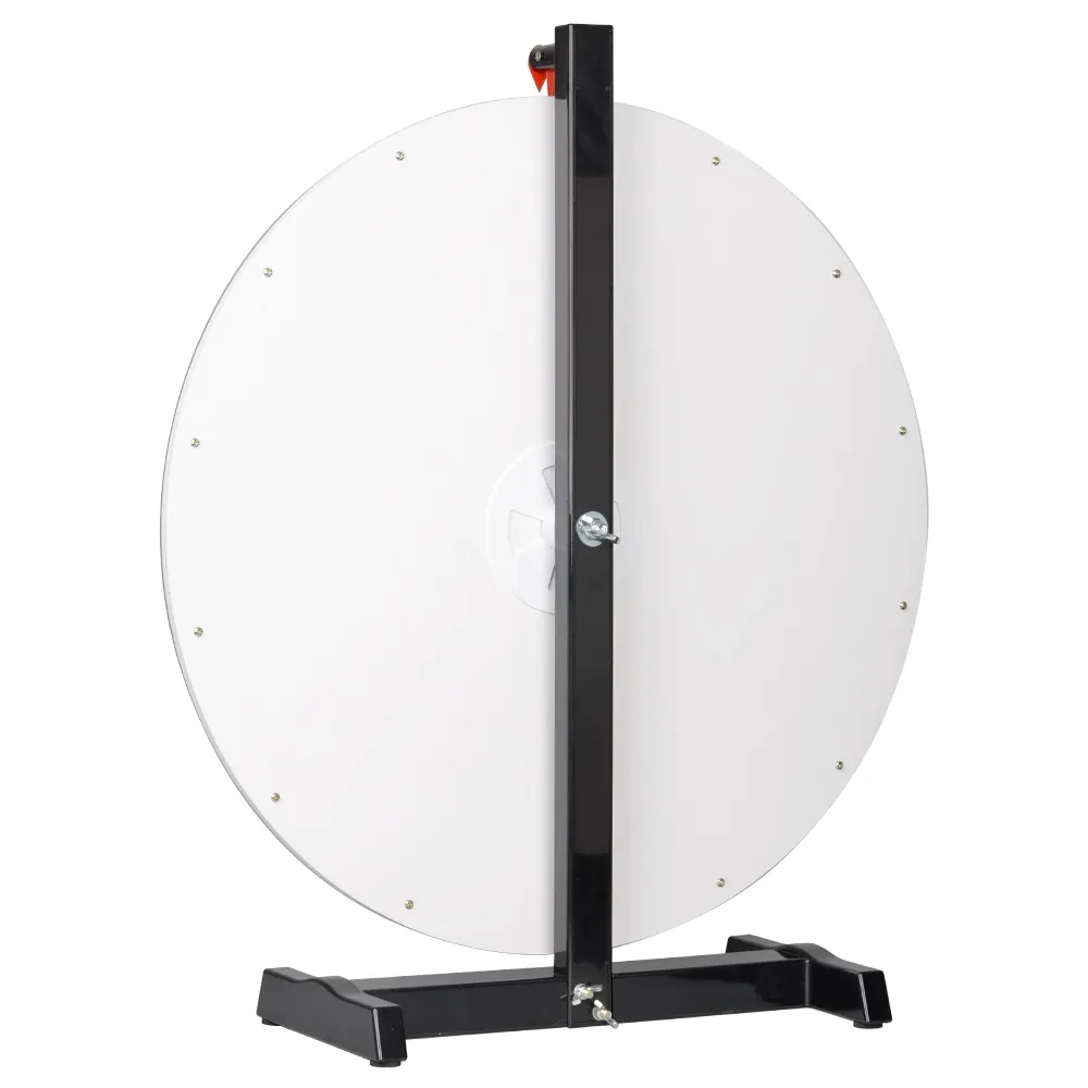 This customizable prize wheel is great for creating fun and boosting morale in schools, business meetings, as a trade show display, and more! The wheel of fortune features a spinning wheel with 14 coloured triangles made from glossy acrylic that create an eye dazzling design that helps draw attention whilst the wheel is spinning. Each of these triangles can be written on using the included dry erase marker, allowing you to easily write in prizes to meet your current needs. You may also use a wet erase marker on the slots, and an eraser is provided to make cleaning the board simple.