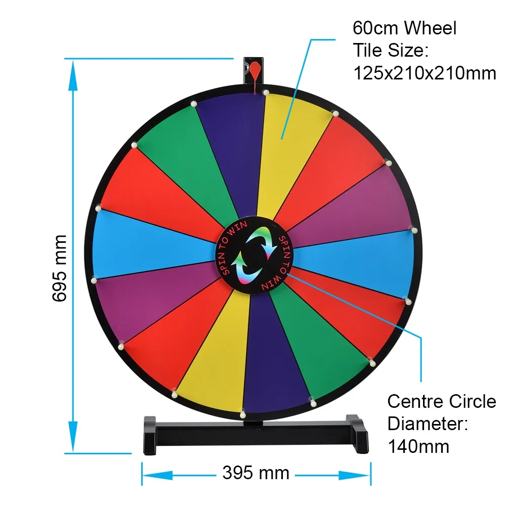 - Customizable prize wheel has (14) slots that are 12.5 x 21 x 21 cm
