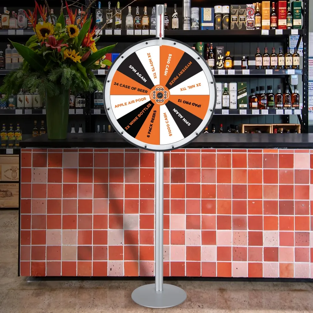 - Large prize wheel features 12 different slot to offer a wide variety of prizes