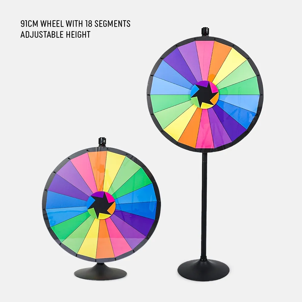 - Wheel of prizes has 910mm diameter game board with 18 different prize slots