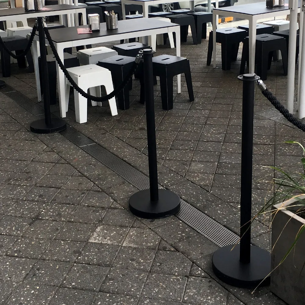 Please Note: These rope barriers are only suited for sheltered area use when the weather conditions permit. Please move stanchions inside during poor weather as they are not designed to withstand rain or moisture.