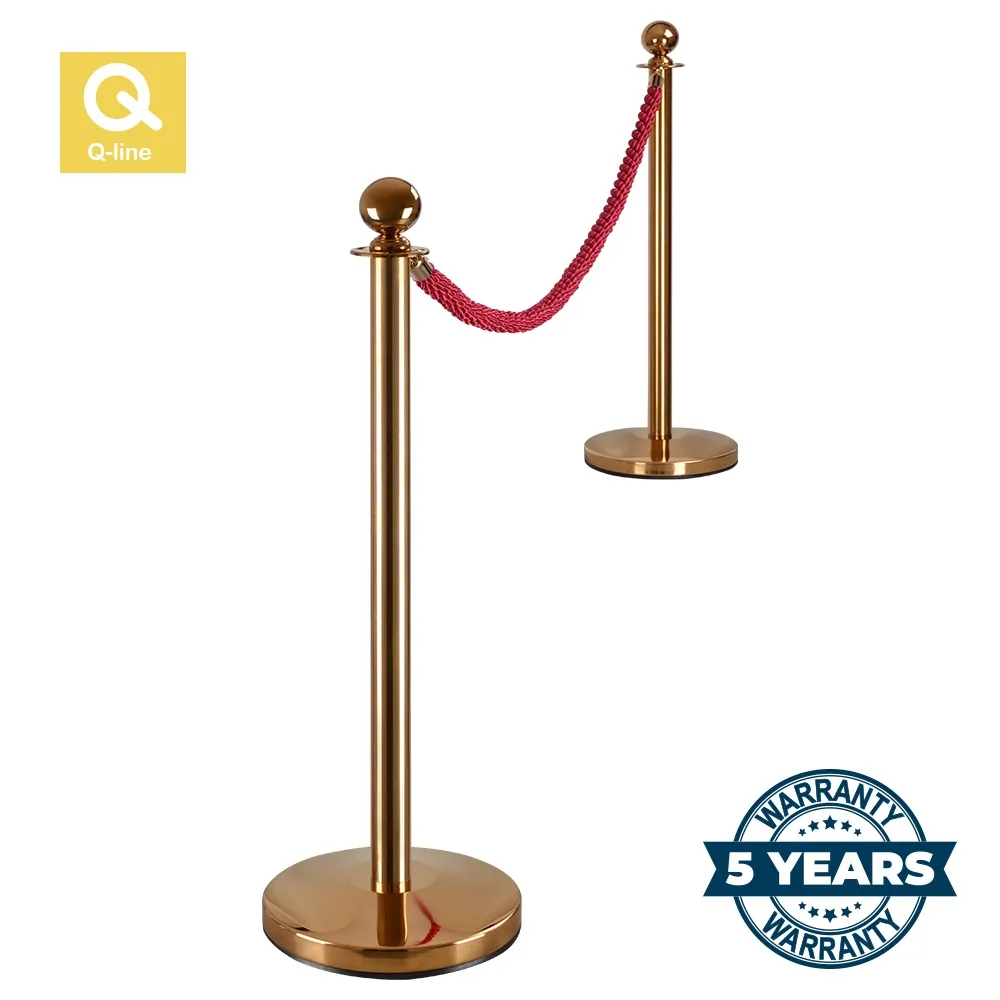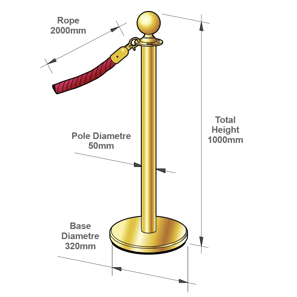 • Stanchion posts are each 1m tall, with a gold finish on steel for durability