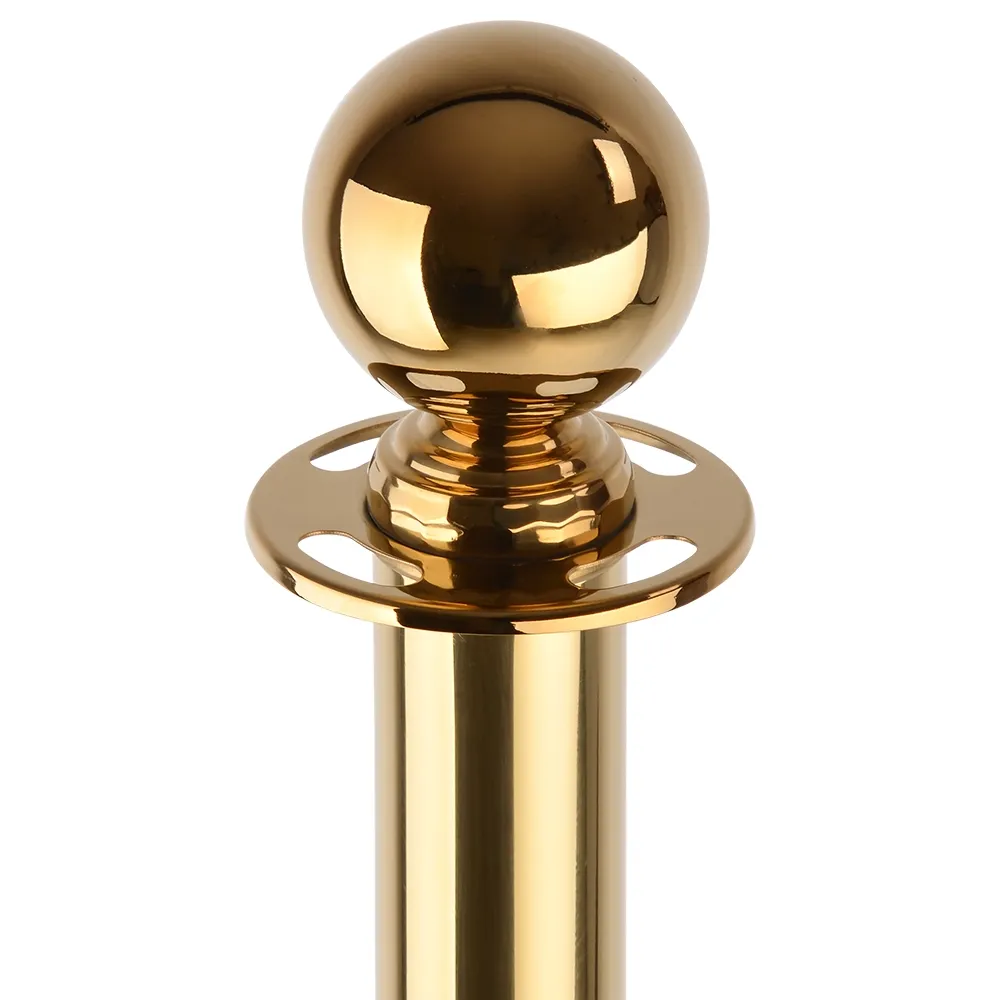 The red carpet stanchion, like queue posts, includes (2) posts that are 1m tall and made from steel for durability and long-lasting use. A gold finish and globe on top of each post provide an attractive look that works well in a variety of locations. The base of each post is weighted for stability and rubberised on the bottom to help keep floors getting damaged during use.