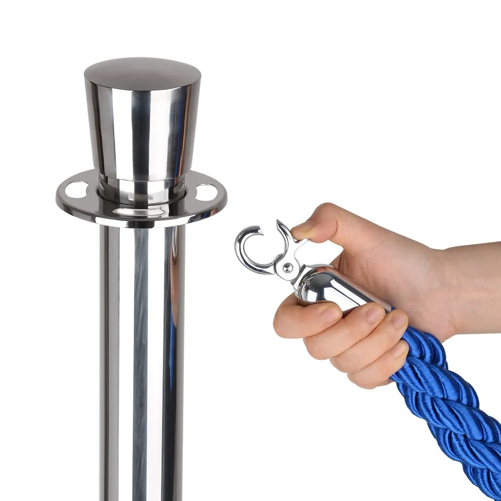 These security ropes, like barricade posts and crowd control queue belts, have been found to be effective in exhibition halls, museums, cinemas, car dealerships, nightclubs, bars, restaurants, and shopping centres. Your purchase includes a 2m long blue braided rope that is eye-catching and matches well with two included stanchions. The clasps on each end securely attach to posts, with employees able to easily remove the rope in order to let customers into special areas.