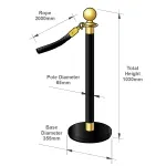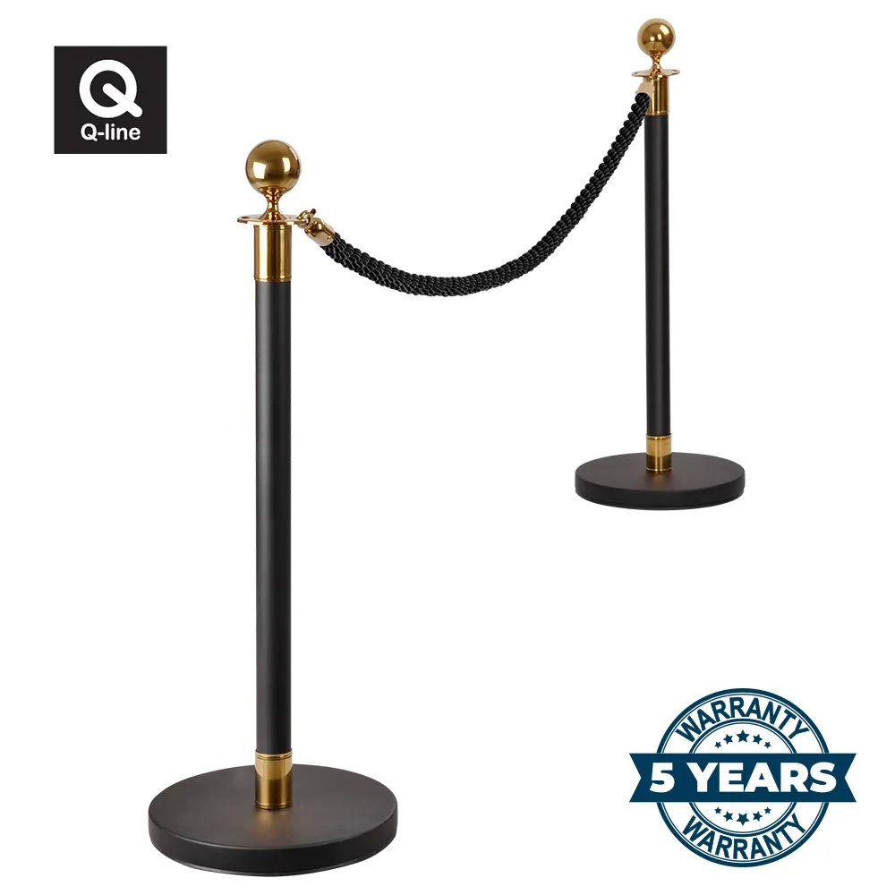 - Barricade rope has (2) 1m tall steel stanchions with black finish & gold accents