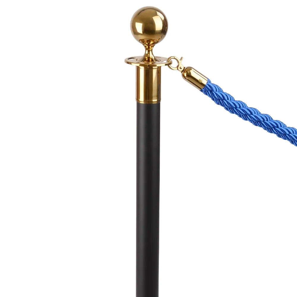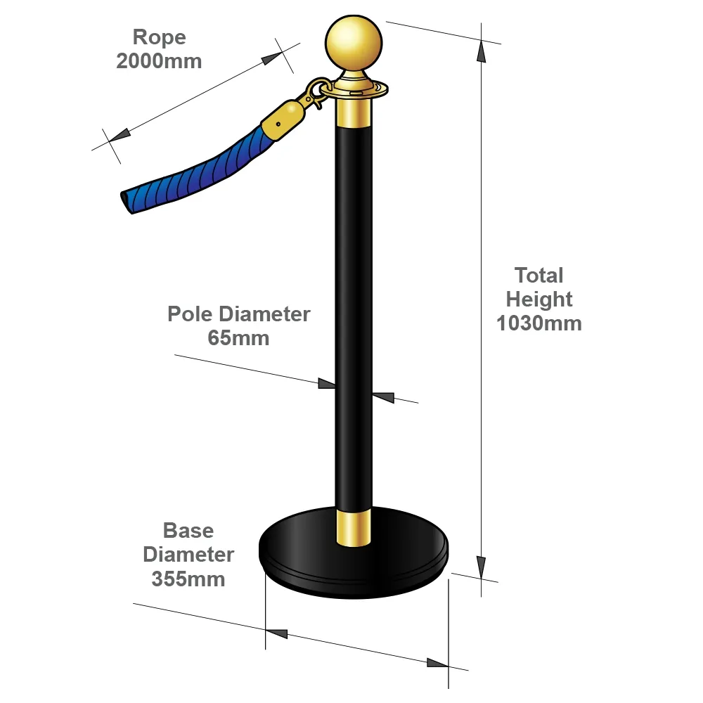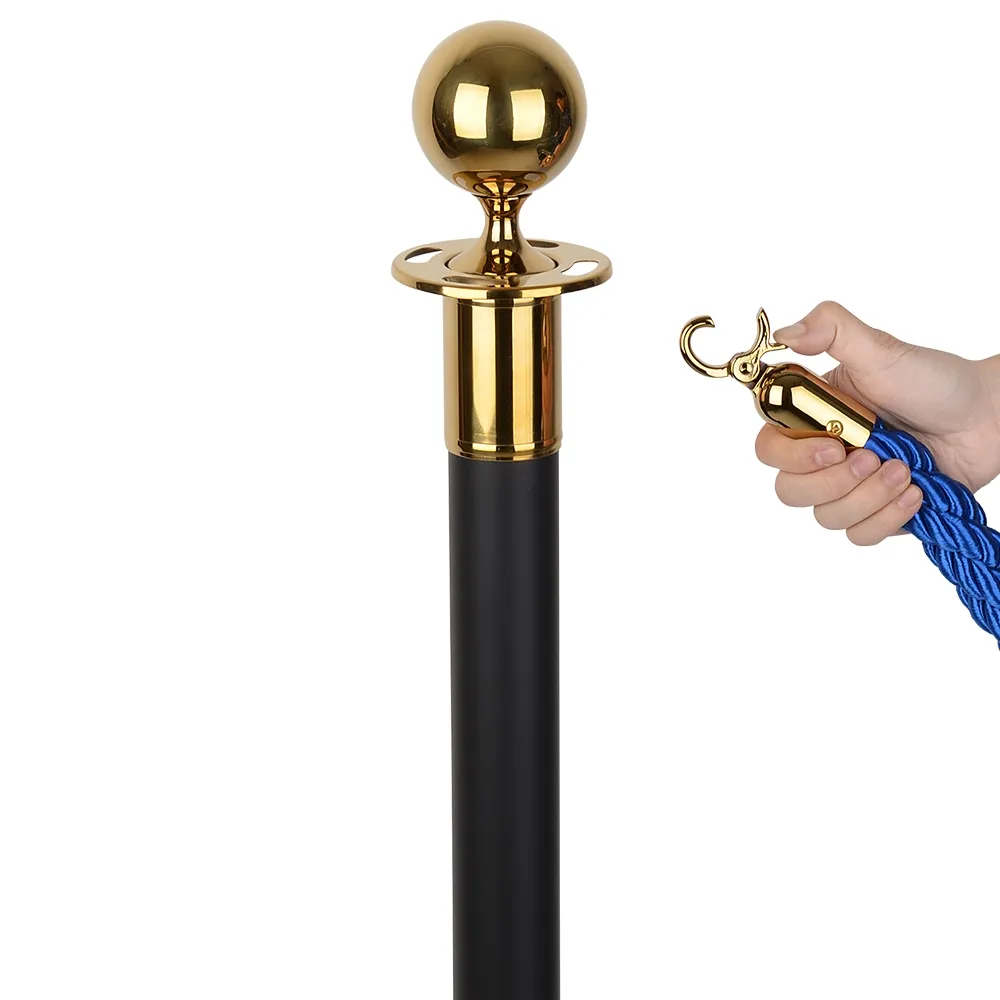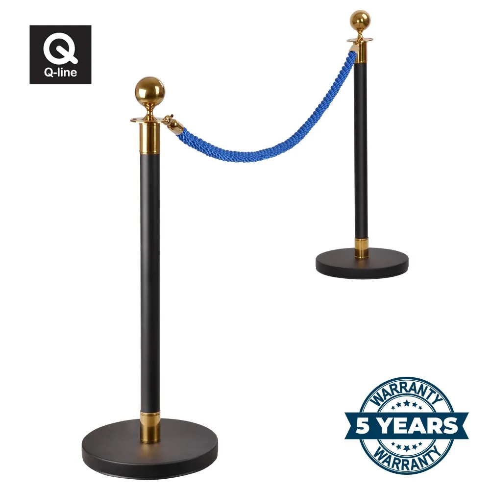 These barrier posts, rope barricades have (2) barrier posts included that are 1m tall and made of steel, perfect for use in heavily-trafficked areas. The sleek black finish with gold accents adds a touch of class to any location, with the top ornamental globe providing a classic look. Around the top of the post are (4) slots for attaching ropes to create the proper configuration necessary for your queue or sectioning off an area.