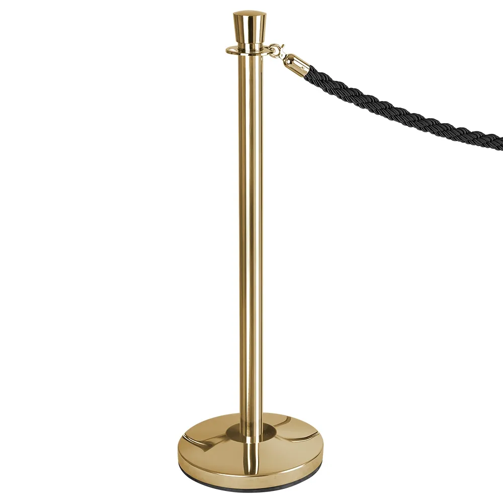 This stanchion rope set, like barrier posts, includes everything you need to effectively set-up a queue or section an area to show people to stay away. The crowd control stanchions are each 1m high with a gold finish to add a stylish look to any location. The post itself is made from steel to be long-lasting, and a tulip head atop the post provides a classic look.