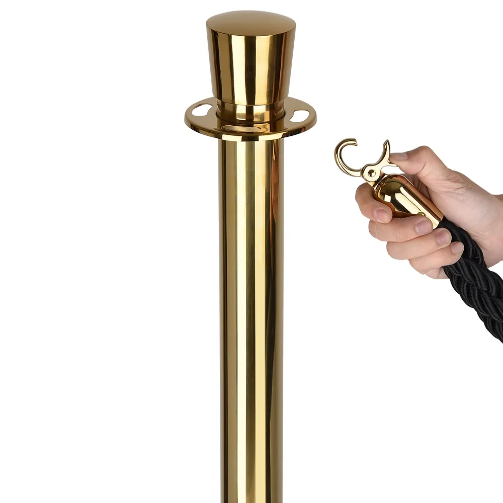 The stanchion rope set also includes (1) black braided rope that is 2m long to cover an expanse with ease. The easy to use clasps on each attach to the barrier post quickly. These crowd control barricades have (4) slots at the top of the post as well to easily attach different ropes towards different directions. For stability, the bottom is weighted and has a rubber covering to help prevent scratches to floors.