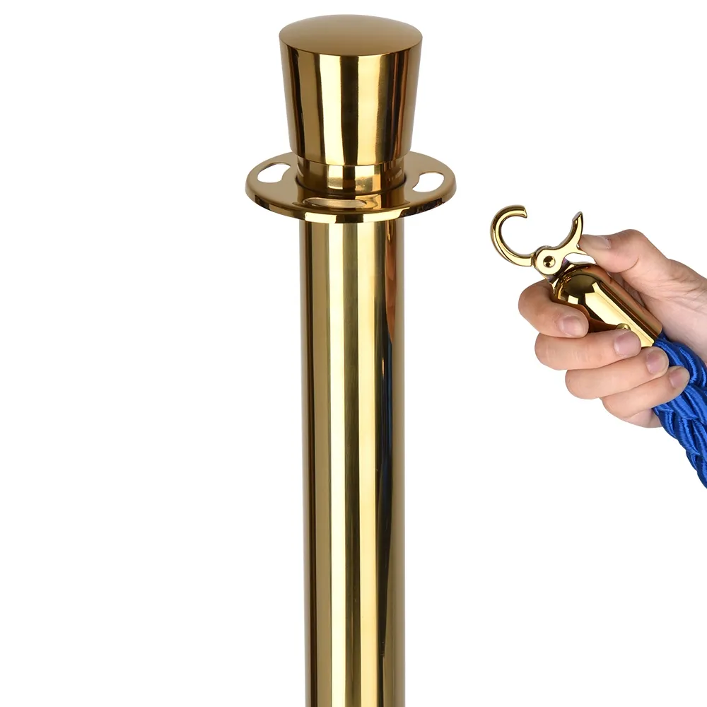 The rope stanchion set, also known as queue barrier belts, also includes a 2m long blue braided rope, an attractive colour that is easily seen by visitors. The rope has clasps on each end to attach to the stanchions. The posts are easy to attach to as well, since they have (4) slots on top to place the ropes easily in different directions to create the configuration you need at your business.