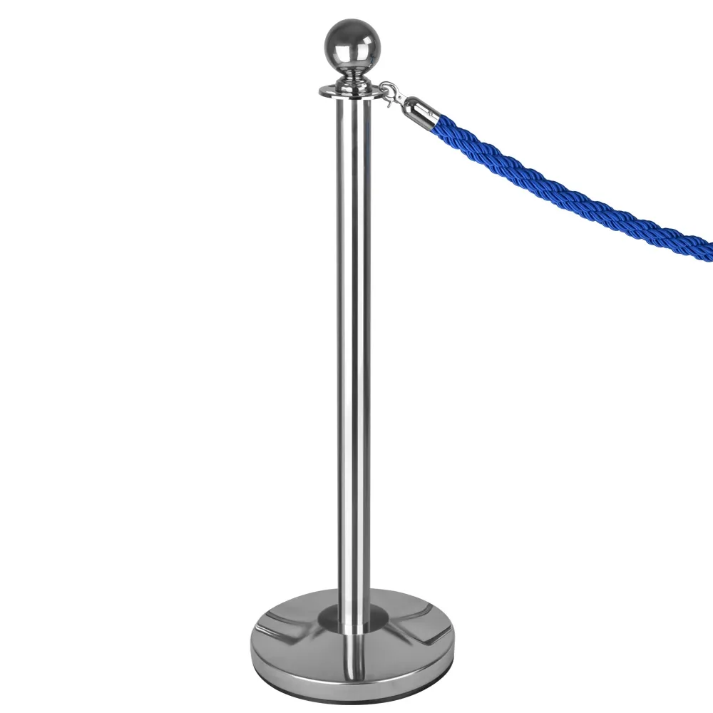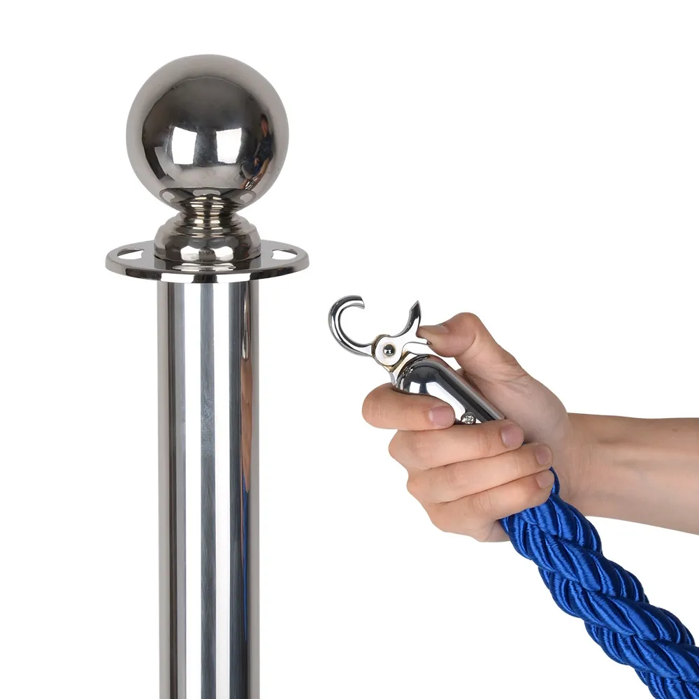 The movie theatre rope, rope divider includes (2) stanchions with your purchase that are 1m tall with a decorative globe on top. The steel post is great for use in heavily-trafficked areas, with a silver finish that will work in any location. The top has (4) slots for putting the ropes together in the best configuration for your business.
