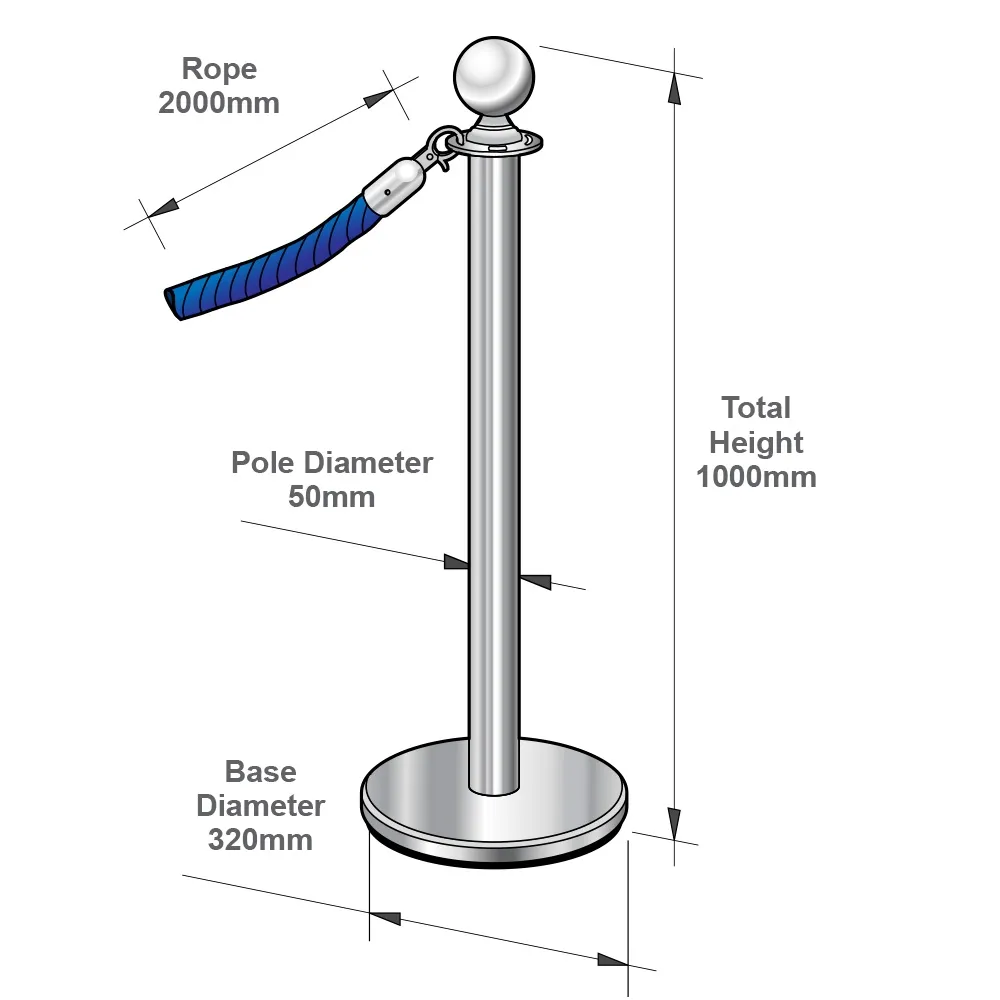 - Stanchion posts are made from steel with a silver finish & decorative dome