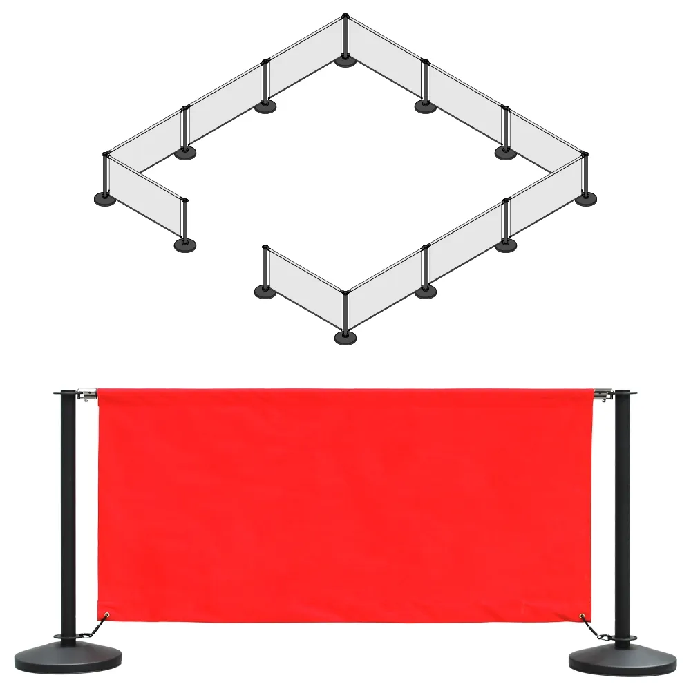 This fabric cafe barrier has heaps of posts and banners to make creating the right configuration to meet your needs simple, whether at a cafe, exhibition hall, restaurant, museum, cinema, shopping centre, information centre, retail store, or so many other locations! There are (11) red 1.6m long fabric banners included made from hard-wearing polyester to provide a long-lasting display that holds up well to both indoor and outdoor conditions. The banners feature a channel sewn into the top that allow them to hang off the included stainless steel rods. Quick clips on the end of each rod securely attach to barrier posts, with the bottoms of each banner have metal grommets to attach to the base of the stanchions to allow movement with breezes using the included spring clips!