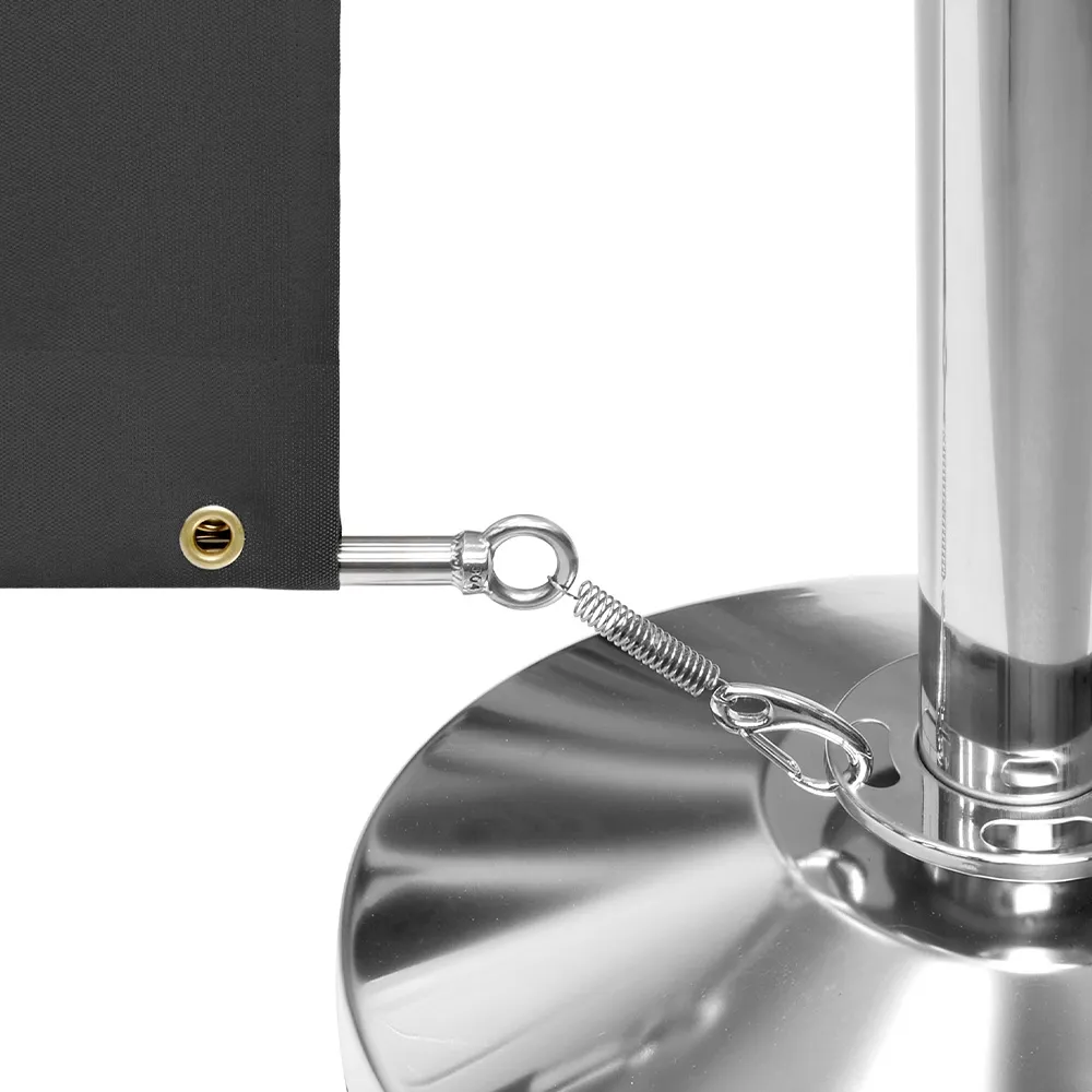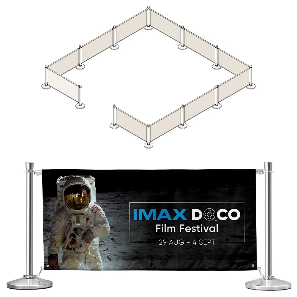 A custom cafe barrier, like branded breeze banners, have (12) stanchions included that are each standard .9m tall and are made from stainless steel with a polished chrome finish for a professional look that matches up with any décor. There are 4-way adapters atop the tulip head post and above the base to connect the included banners or even VIP ropes in multiple directions easily to create your desired configuration. Many more kits are available with varying amounts of banners or posts and a series of solid colour banners in red, blue, white, and black colour options. The bottom of the weighted base has a rubber ring that helps to protect against floor damage when used inside. Slimline Warehouse has fast shipping to anywhere in Australia, buy online today for fast dispatch to your location!