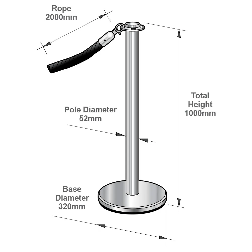- Stanchion post is 1m tall, with steel display powder coated silver for style