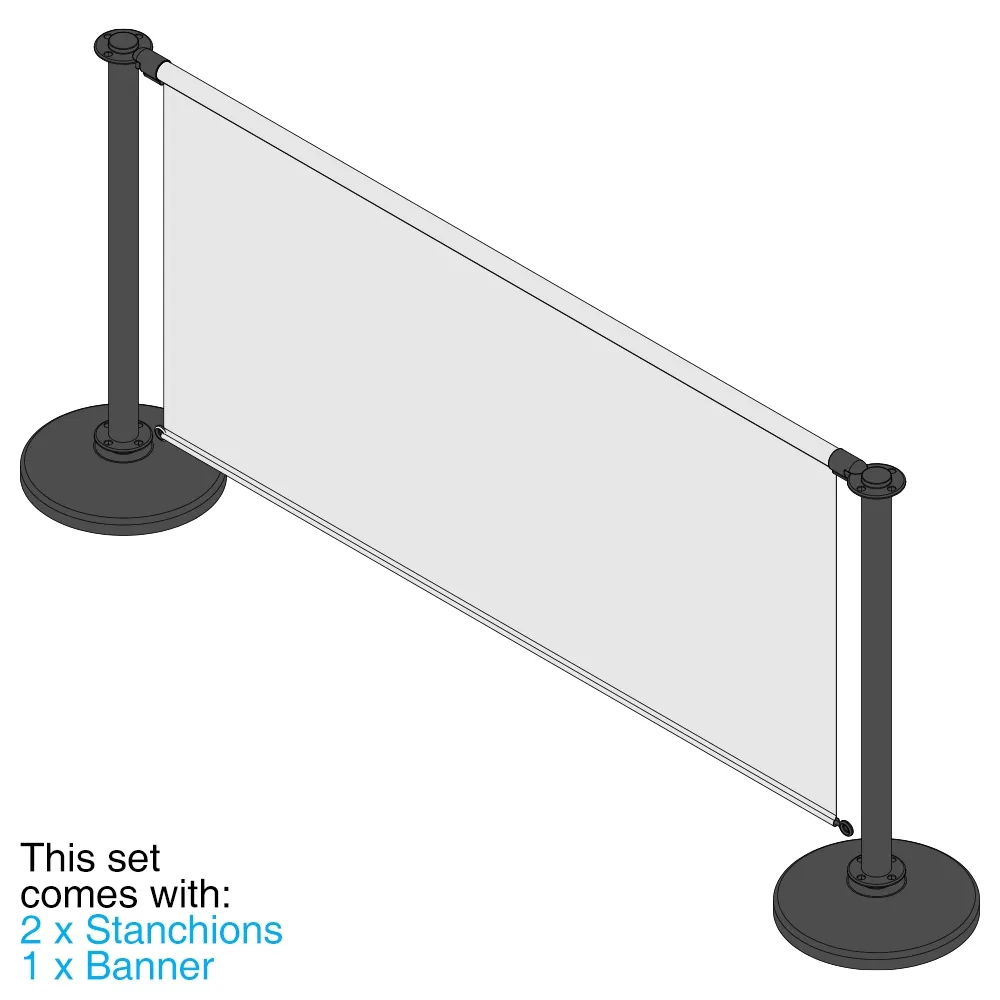 This cafe barrier banner, like wind barriers, features a 4-way connector atop the post that makes it easy to connect not only the included banner but other VIP ropes or banners to finish setting up your area. There are heaps of configurations to choose from, with multiple stanchions and banners available in different colours, including full colour digital print options to display your logos or information! Each post is made from stainless steel with a matte black finish to easily work with any style décor. A hard plastic ring around the base helps prevent damage to floors if used within an indoor area. Slimline Warehouse has same day shipping available with this and most other in stock products if bought by 3pm AEST, buy online today for fast dispatch to your business!