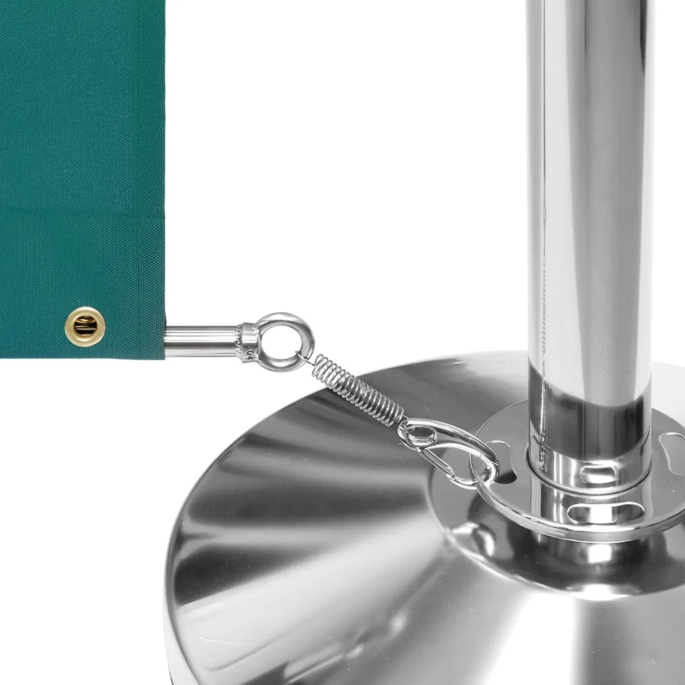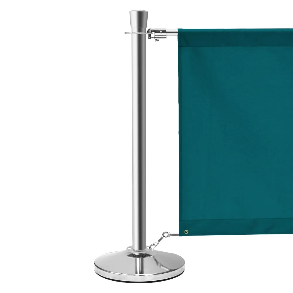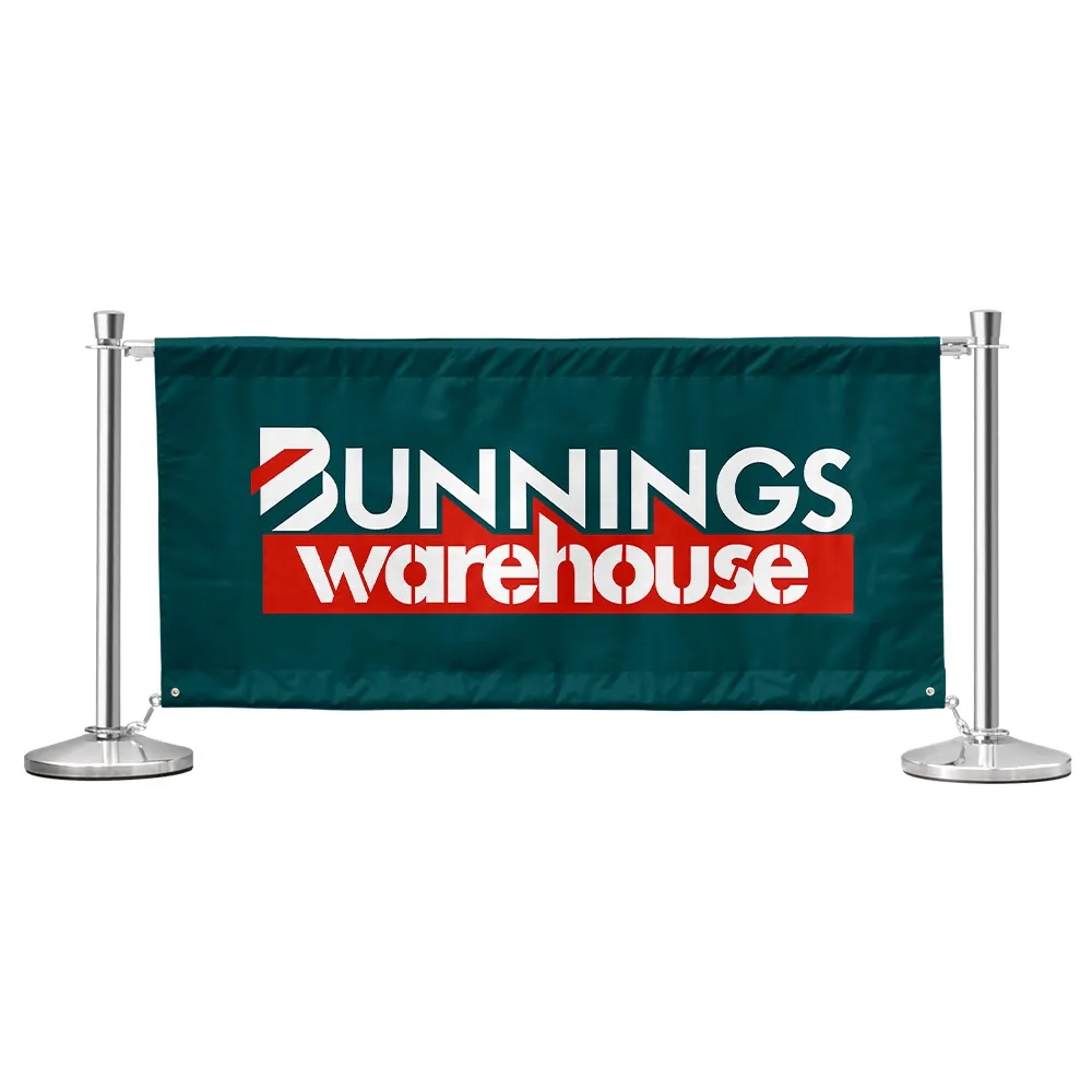 Branded cafe barriers feature a 1.6m long banner that has your custom designs printed on both sides of the fabric! Graphics are printed using a digital printing process through dye-sublimation that allow for rich imagery and vivid colours! Our in-house team is also available to assist with any graphic help, with different tiers available to meet varying needs. The banner is made from hard-wearing polyester to allow for indoor and outdoor use, and has a channel sewn into the top to thread the included stainless steel rod through to hang the fabric between the stanchions. Quick clip ends on securely attach to the stanchions, and spring clips are used to attach between the base of the barrier posts and the metal grommets on the bottom of each banner.