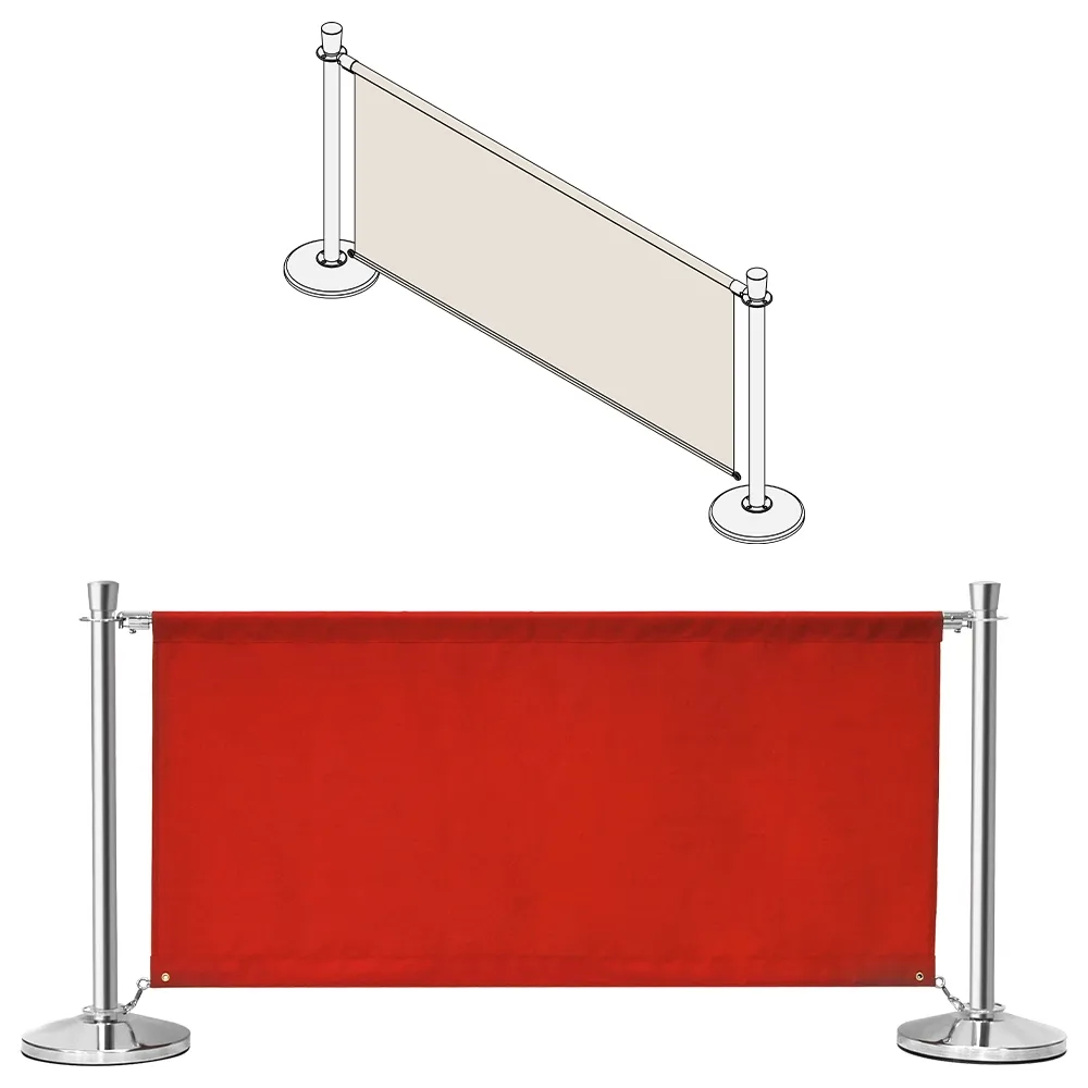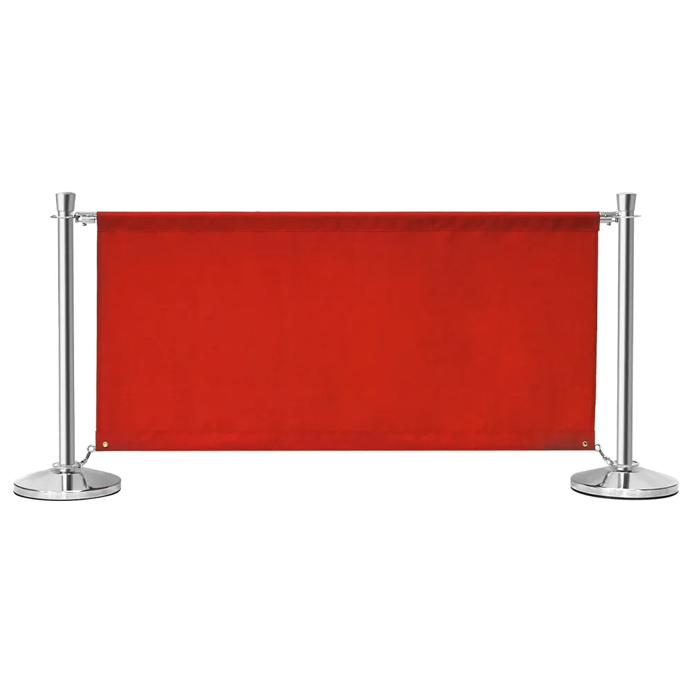 This display banner is used to guard against breeze at restaurants, bars, and cafes. The cafe wind barriers offer polyester fabric banners in red, with additional colours also available to best suit your business. The restaurant barrier, display banner is a set that includes (2) posts and one banners.