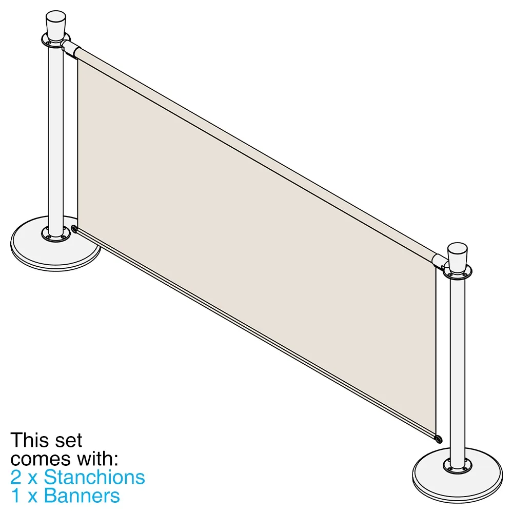 The patrons at your restaurant will be grateful how the taut banners help keep the breeze away during their meal. The stainless steel bars use spring-loaded clips to attach to the (2) posts. The restaurant barrier has a beautiful chrome finish to accommodate any setting, even outside! The wind barriers with multiple colour choices are designed to suit the different needs of companies, able to help market your business outdoors in an exciting manner!