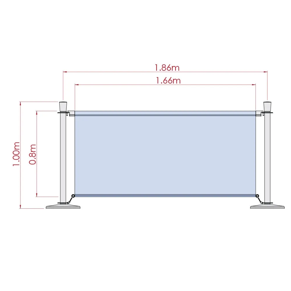These cafe barrier banners, restaurant barriers are available in additional colours, styles, and configurations with more posts and banners in addition to full colour print versions that can have your business logos placed directly on the fabric! The barrier posts are .9m tall and made from stainless steel with a polished chrome finish for a stunning look. Spring clips attach the bottom of the post to each banner to prevent them from flying up during breezes to affect patrons. The weighted bases of each post use a plastic ring to help prevent damage to floors if used indoors. Slimline Warehouse has same day shipping available with this and most other in stock products if purchased by 3pm AEST, buy online today for fast dispatch to anywhere in Australia!
