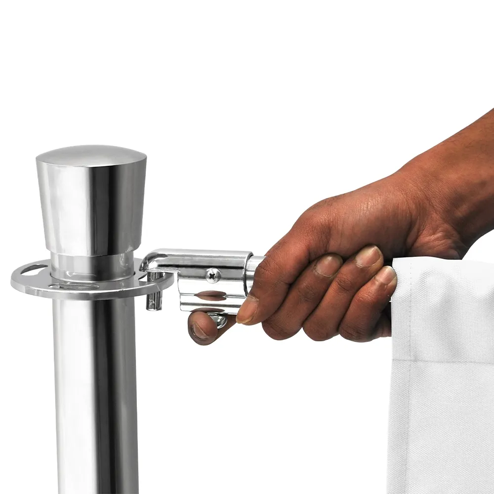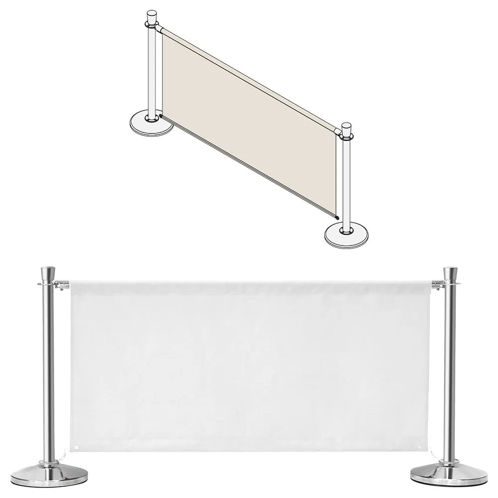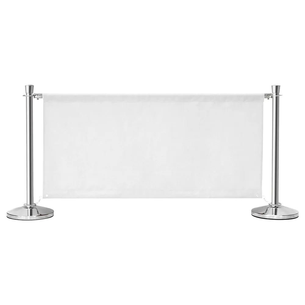 Restaurant barriers are placed in outdoor seating areas to separate tables from pathways, at entrances to help form a queue, and in retail stores, shopping centres, and exhibition halls to help guide visitors! This kit features a 1.8m long white banner made from polyester to be hard-wearing and stand up well to daily use in all locations. The banner is attached to the (2) stanchions using a stainless steel rod that is threaded through the banner and connects to the posts using quick clips that securely attach to the top of each stanchion and are easy to remove by sliding back the lock. The barrier posts have a 4-way connector atop each stanchion to allow additional banners or VIP ropes to be attached to create different configurations to meet your needs!